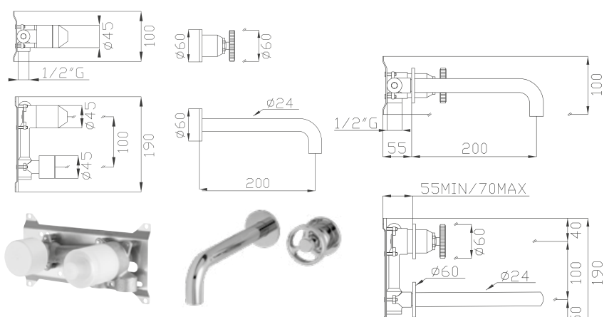 EFFEPI RUBINETTERIE | OT58 Wall Mounted Faucet - $1,606.00 - $2,100.00