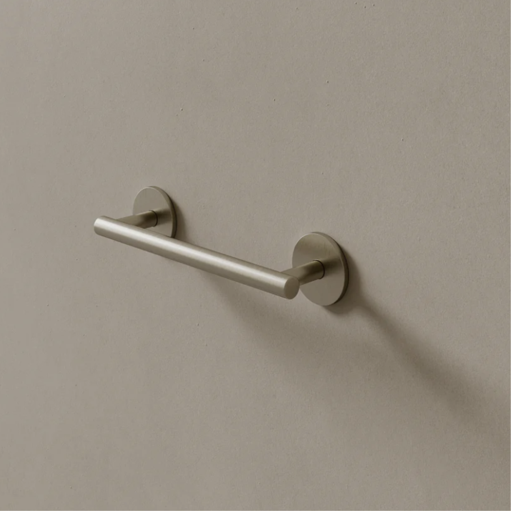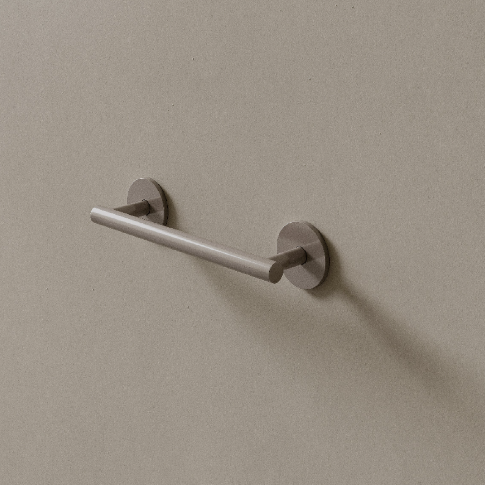Crafted with a solid brass core and a corrosion-resistant PVD finish, this 12-inch modern towel rod integrates effortlessly into modern bathrooms, offering a defined place for hand towels.