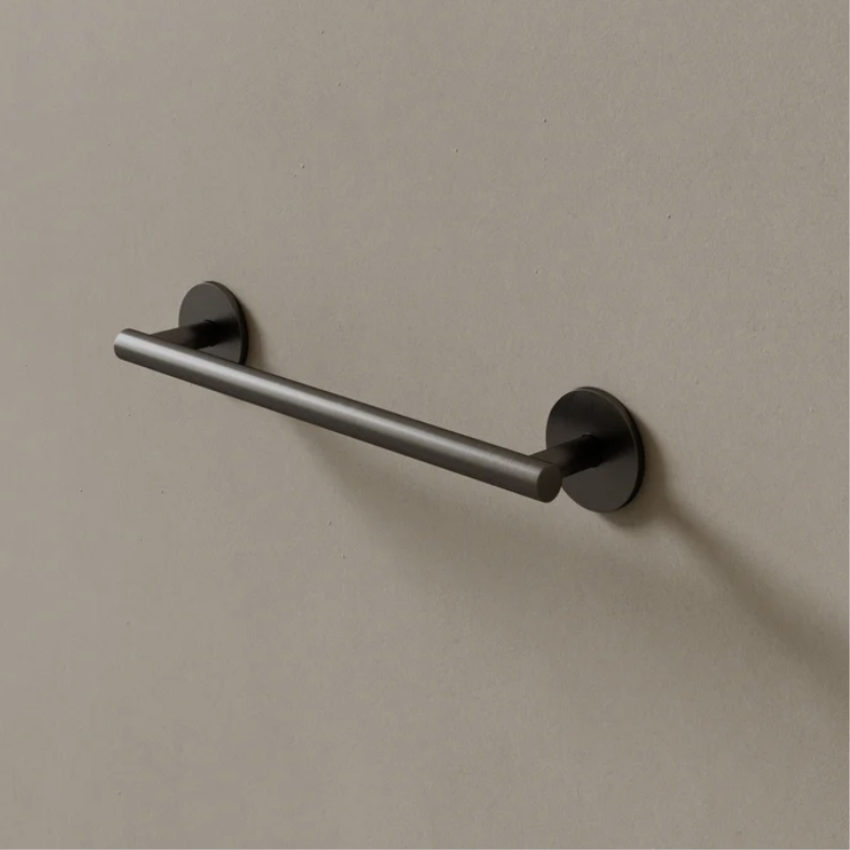 Crafted with a solid brass core and a corrosion-resistant PVD finish, this 12-inch modern towel rod integrates effortlessly into modern bathrooms, offering a defined place for hand towels.