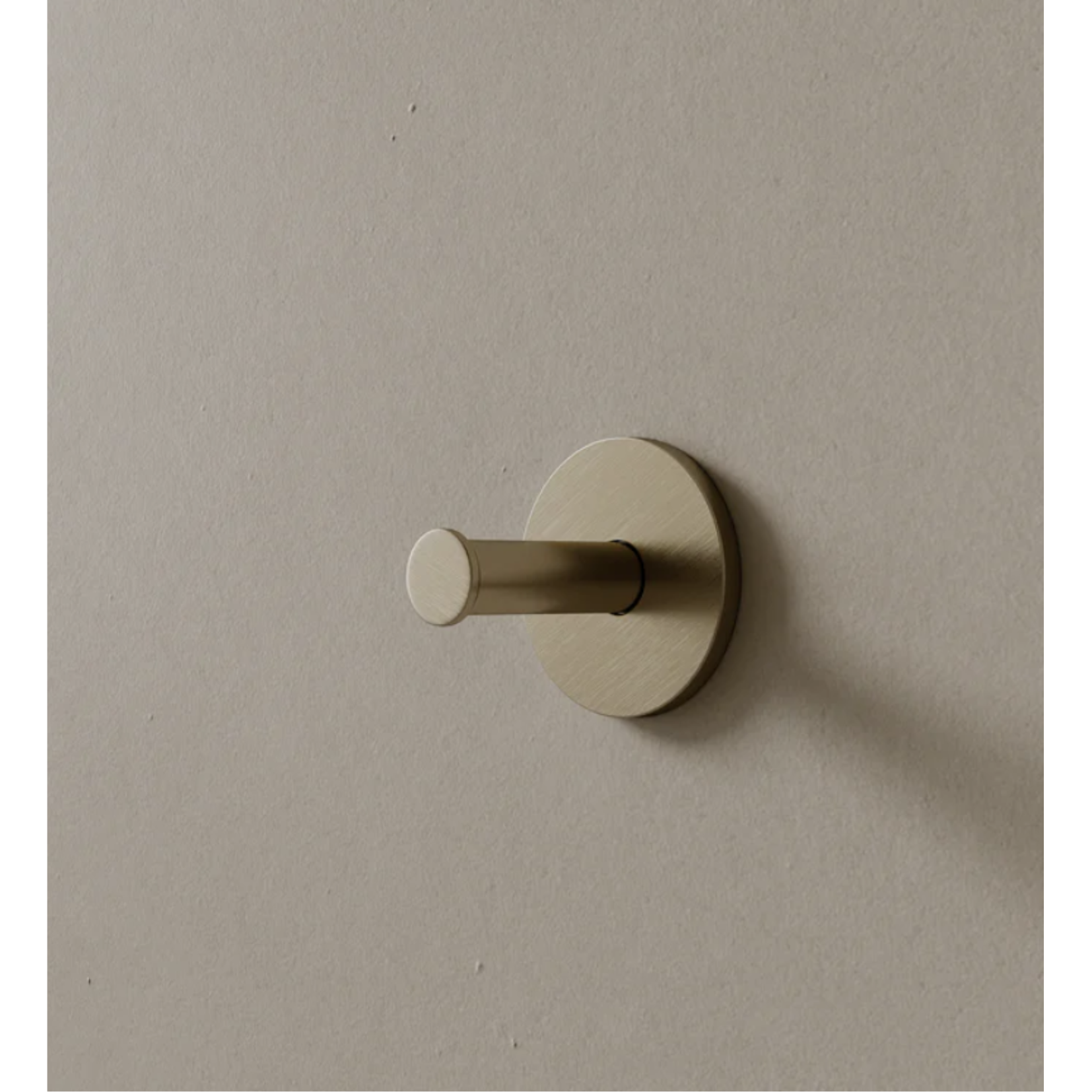 Crafted with a solid brass core and a corrosion-resistant PVD finish, this modern robe hook integrates effortlessly into modern bathrooms, providing a solution for hanging robes, towels, or accessories.