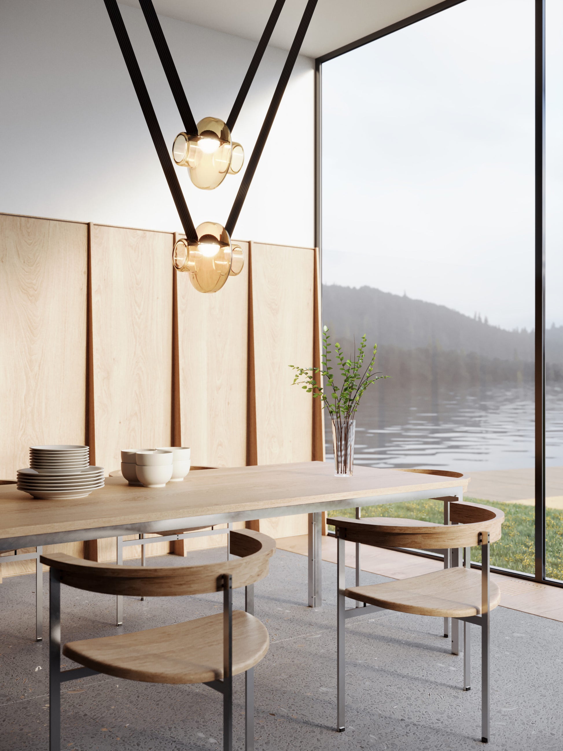 Etat-des-Lieux, a contemporary lighting system defined by its variable silhouette, pays homage to the scenic mountains and their majestic reflections in nearby waters.
