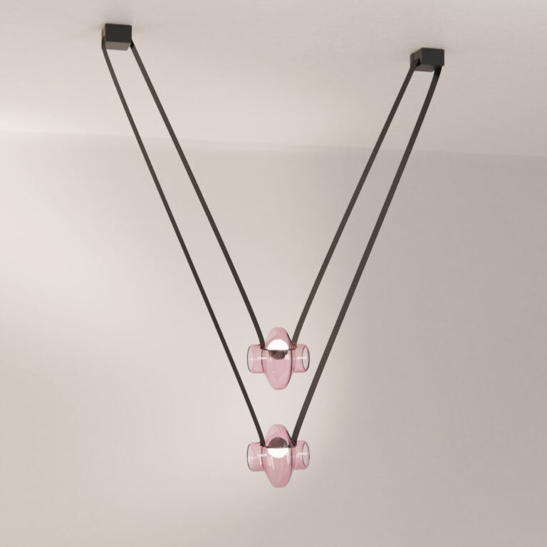 The hand-blown glass globe is available in 4 colors (transparent, pink, gray and amber) in clear or frosted finishes.