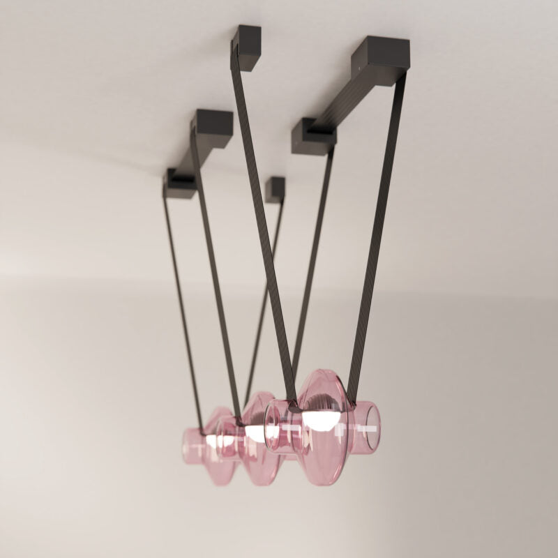The hand-blown glass globe is available in 4 colors (transparent, pink, gray and amber) in clear or frosted finishes.