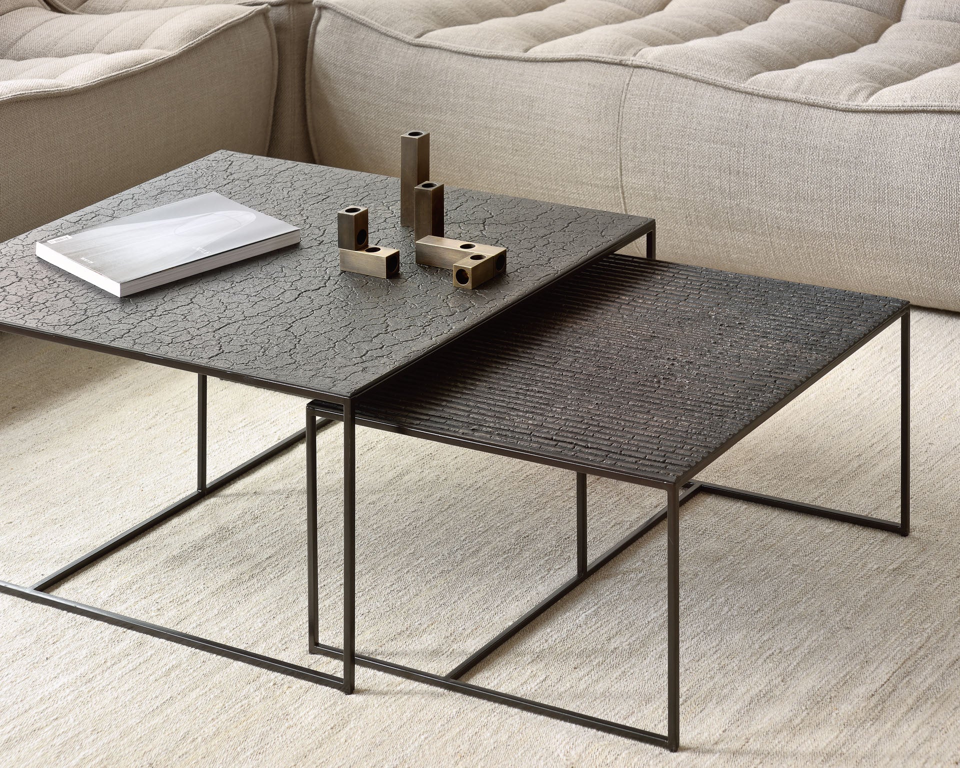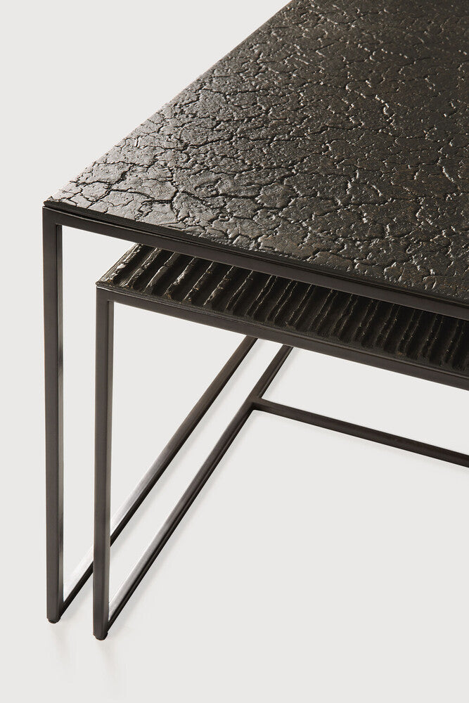 Sold as a set of 2 tables. The Minerals material is made from mineral powders, water, earth, natural colour pigments and metallic powders. The materials are carefully combined to create a unique finish on the metal structure that is sealed with a water-based topcoat for optimal protection against spills and daily use.