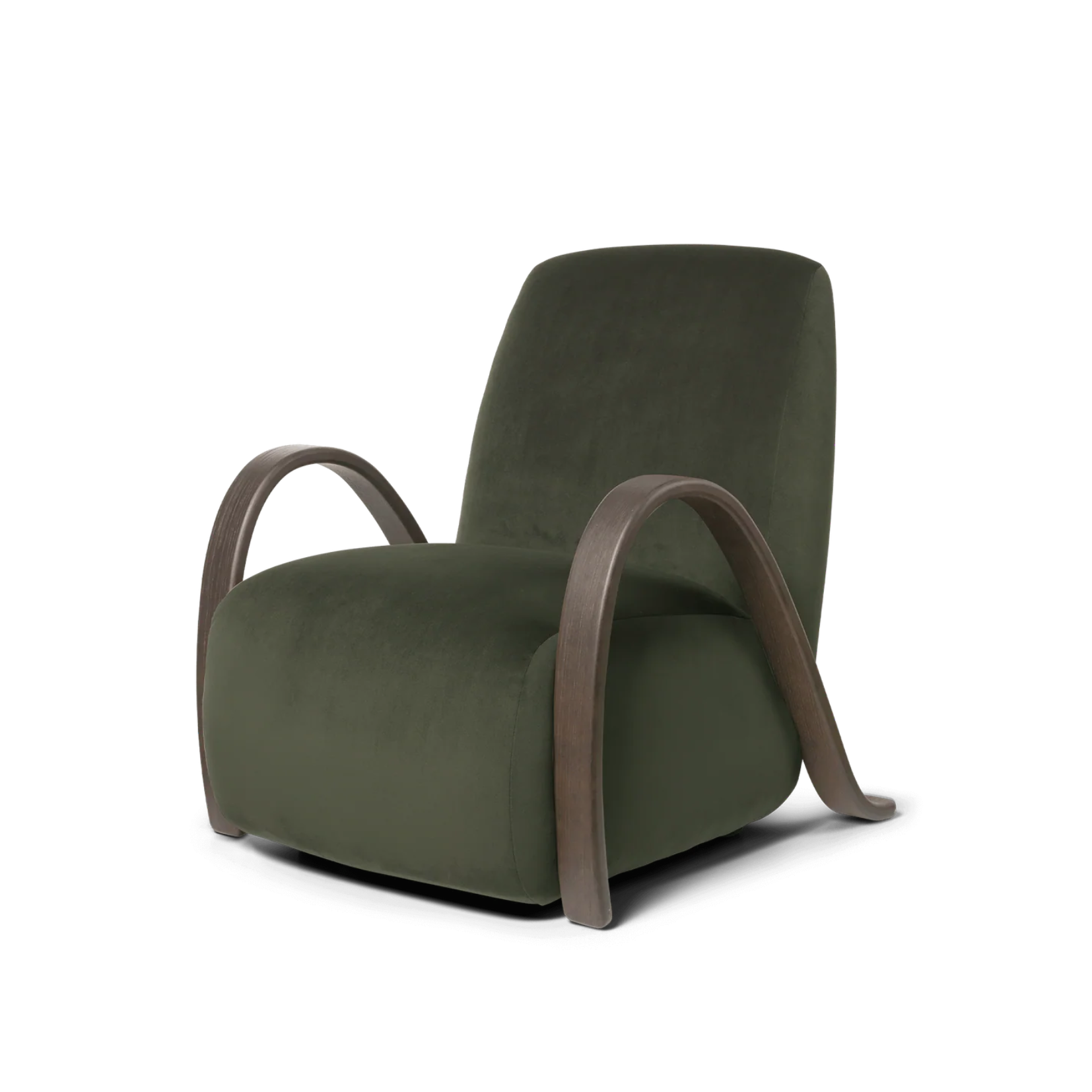 The Buur Lounge Chair effortlessly combines comfort and elegance, featuring a luxuriously cushioned seat and backrest. Designed in collaboration with Says Who, the chair has distinctive, curved armrests crafted from FSC™ certified oak that beautifully mimic the natural flow, enhancing its rounded design. With its smooth construction, the Buur Lounge Chair invites you to indulge in its plush upholstery and experience a truly enveloping embrace. With its vintage-inspired aesthetic, the Buur Lounge Chair serves as a stunning statement piece in any room.