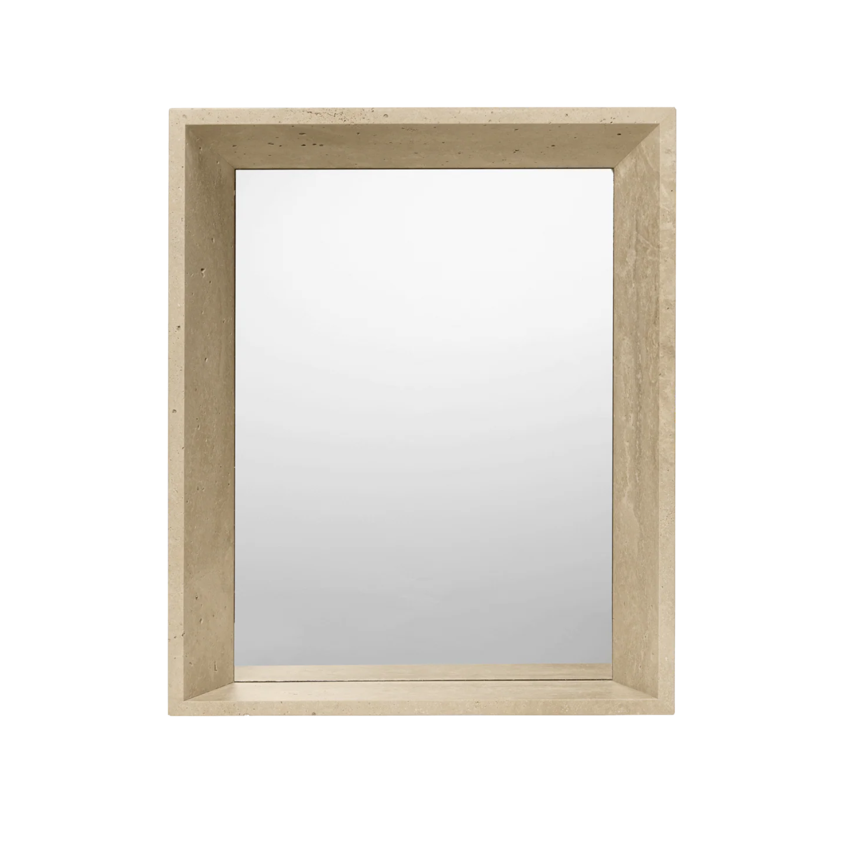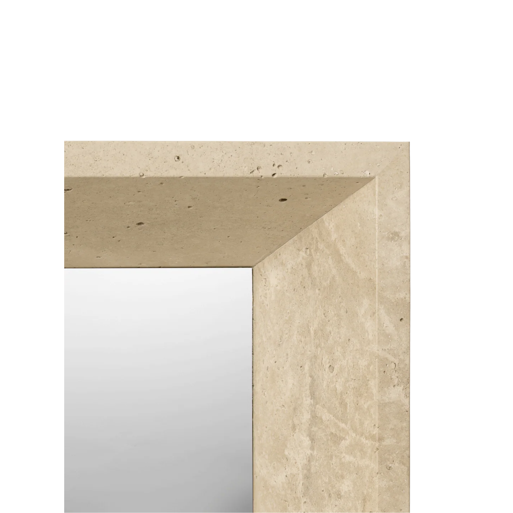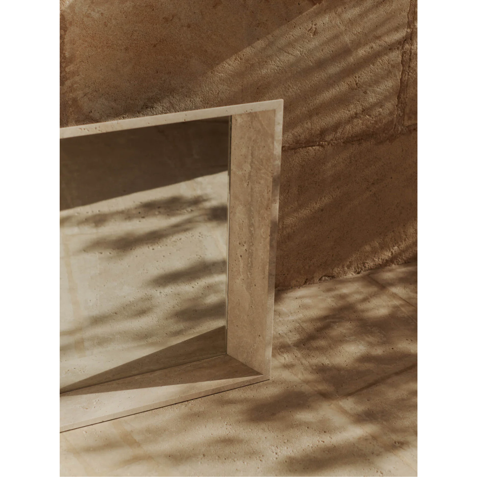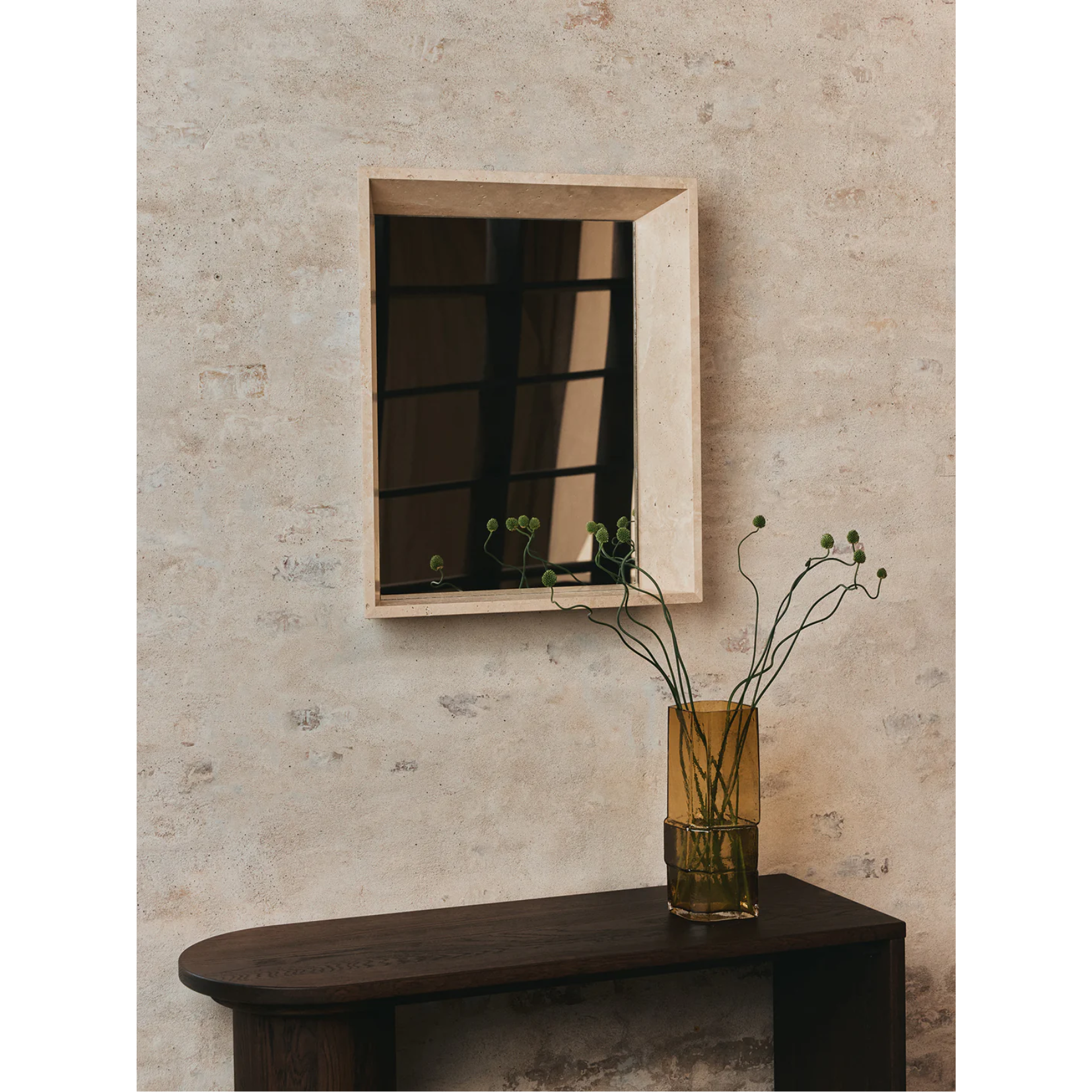 The Lancet Mirror is inspired by the narrow aperture windows of Can Lis, known for casting stunning light patterns throughout the day. Named after the pointed architectural lancet windows, the design pays homage to these forms. The mirror is crafted from travertine and glass, combining natural stone textures with sleek reflectiveness. With its architectural elegance, the Lancet Mirror serves as a striking focal point, ideal for hallways, entryways, or living spaces.