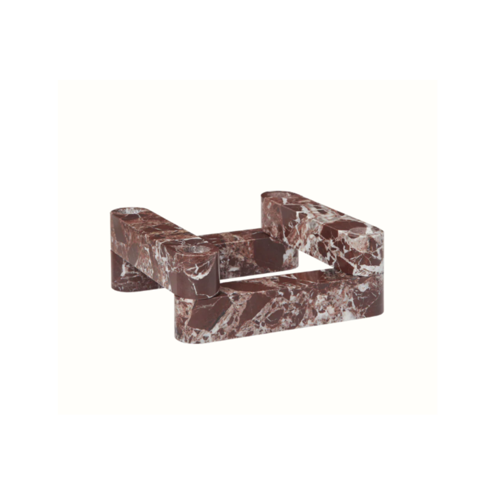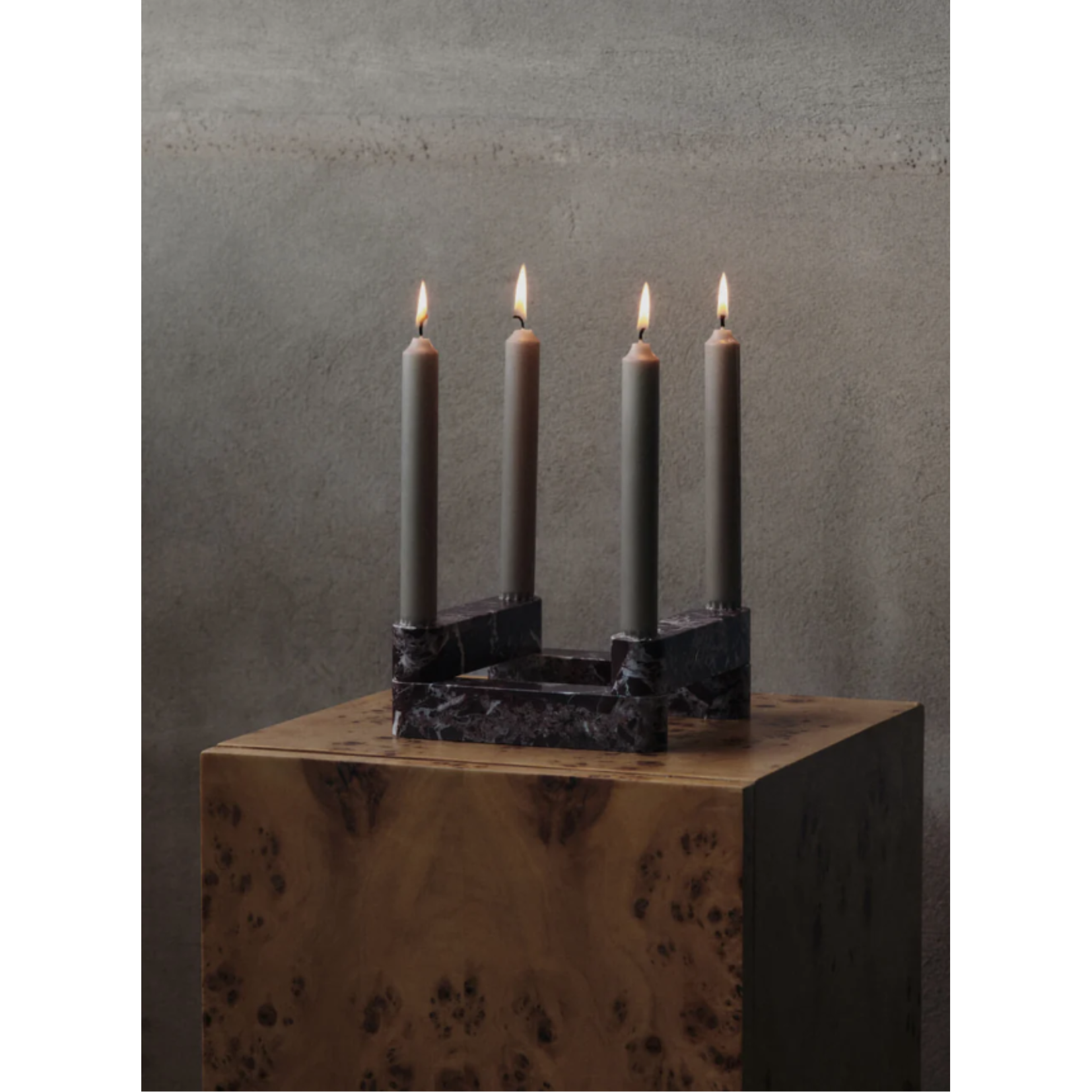 The Newel Modular Candle Holder draws inspiration from architectural forms, where brickwork functions as both structure and ornament. Carved entirely from rich red marble, it consists of four modular, stackable units designed to hold standard taper candles. Its deep hue adds warmth and elegance, making it a striking centrepiece for holiday gatherings or a contemporary interpretation of the classic Advent wreath.