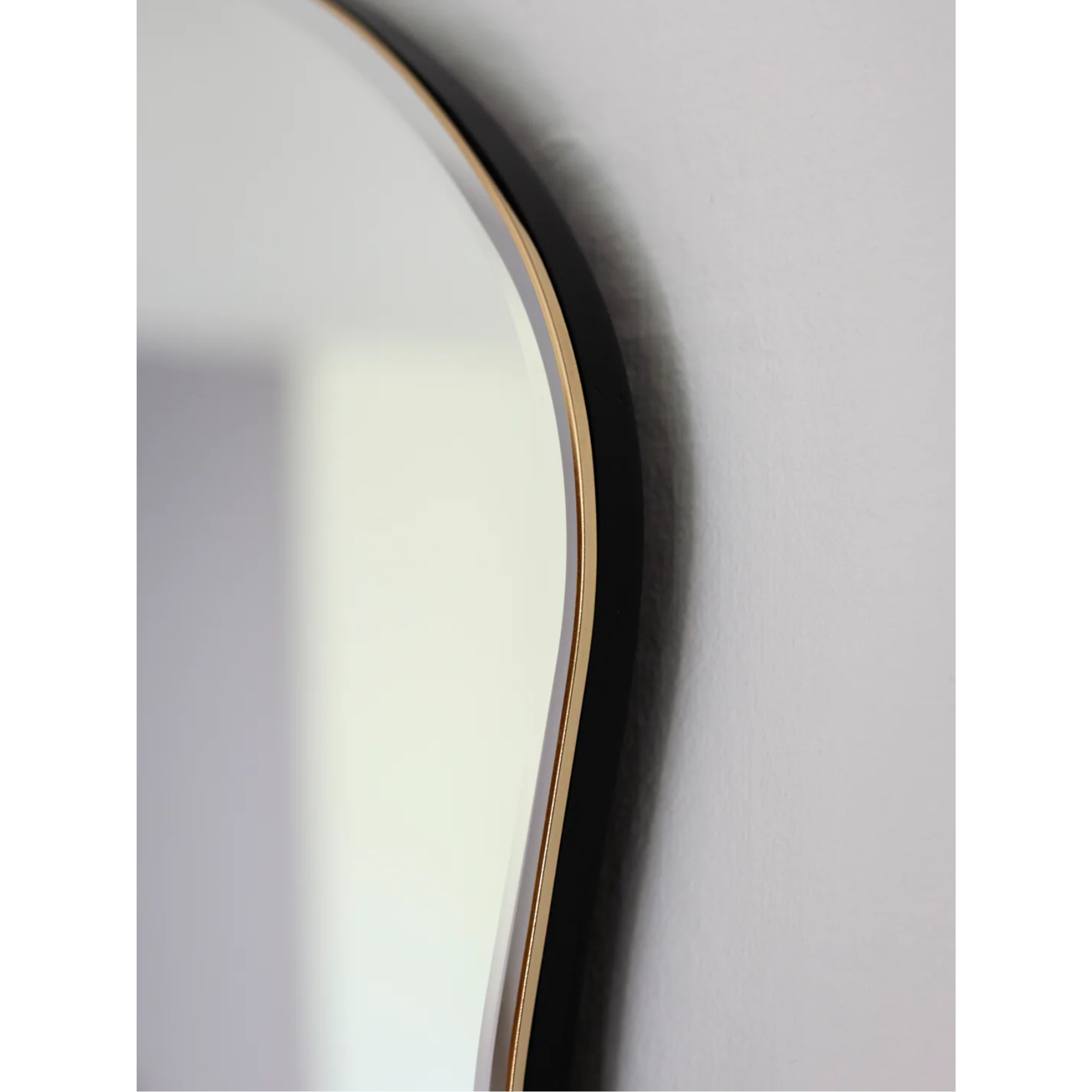 The Pond Series marries form and beauty by using organic shapes, inviting open and fluid forms into your home and turning this functional mirror into a decorative wall piece. The curved edges are held by a slim, metal frame, and can be hung in any direction so that you can find the perfect fit for your space. Please note: the mirror's metal frame features two welding marks at the points where the metal has been fused together.