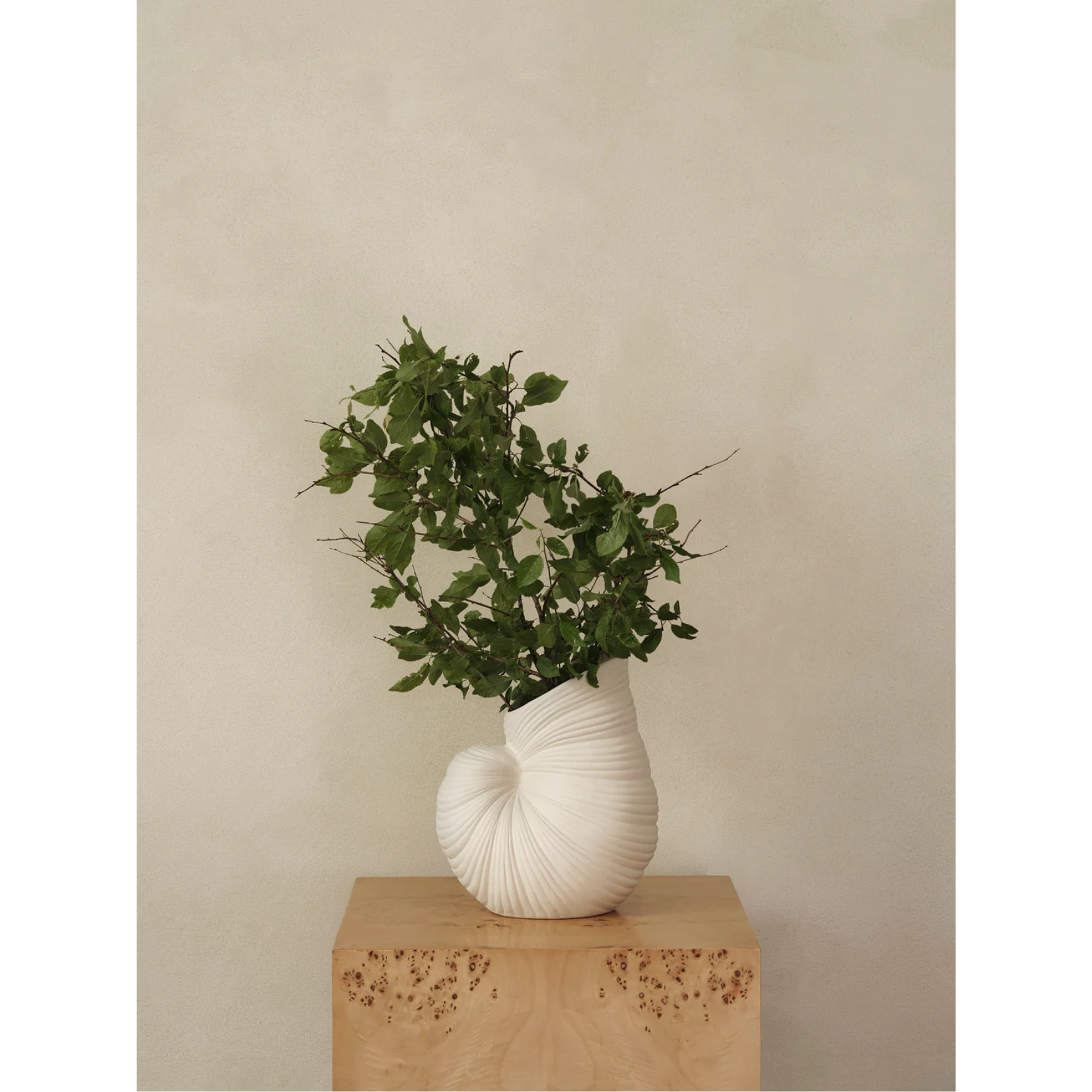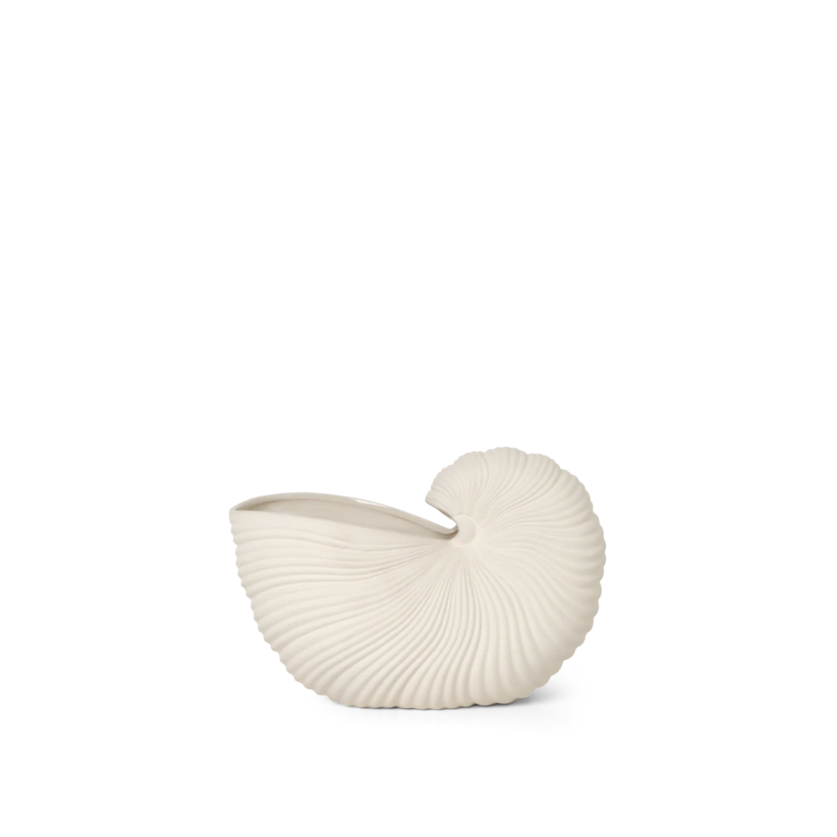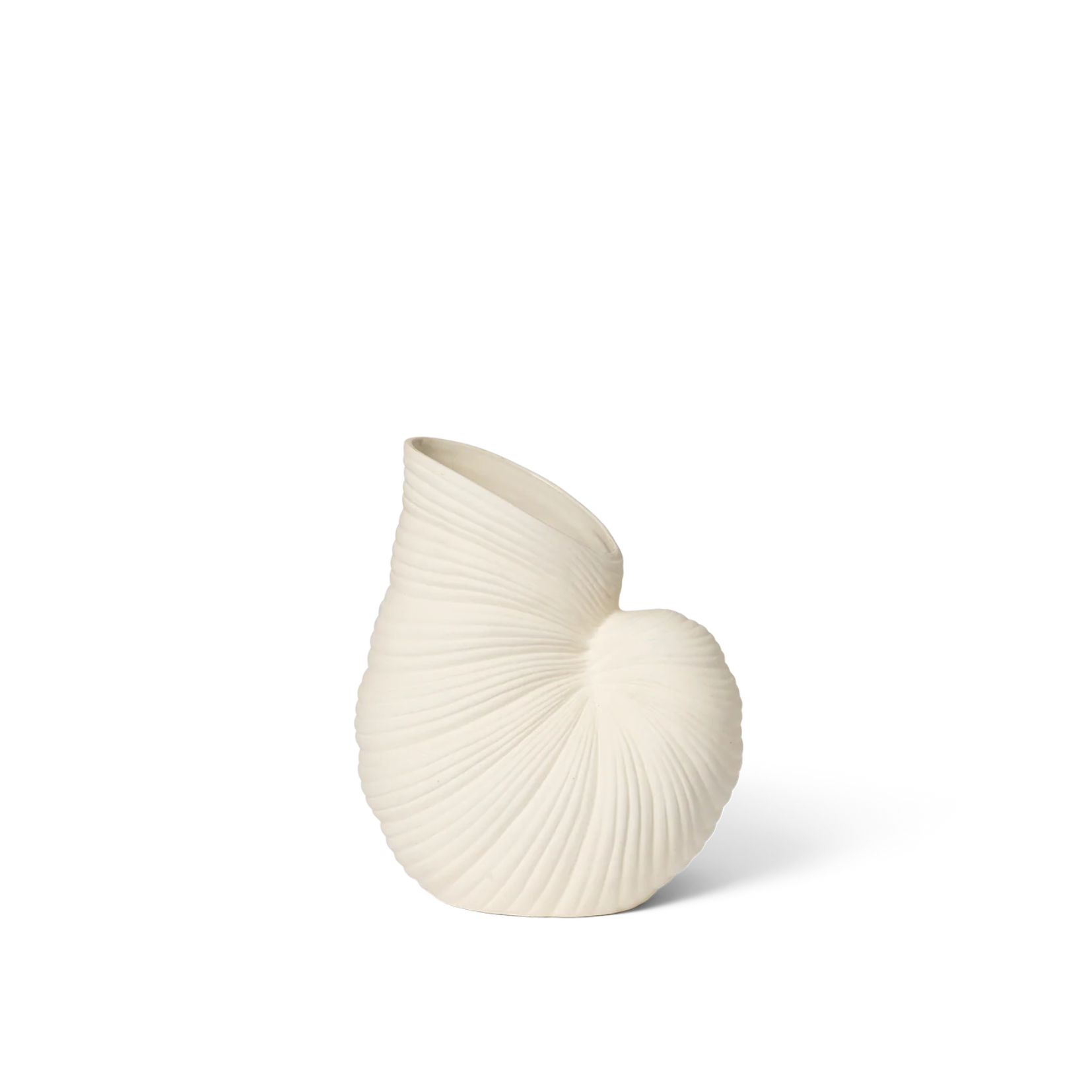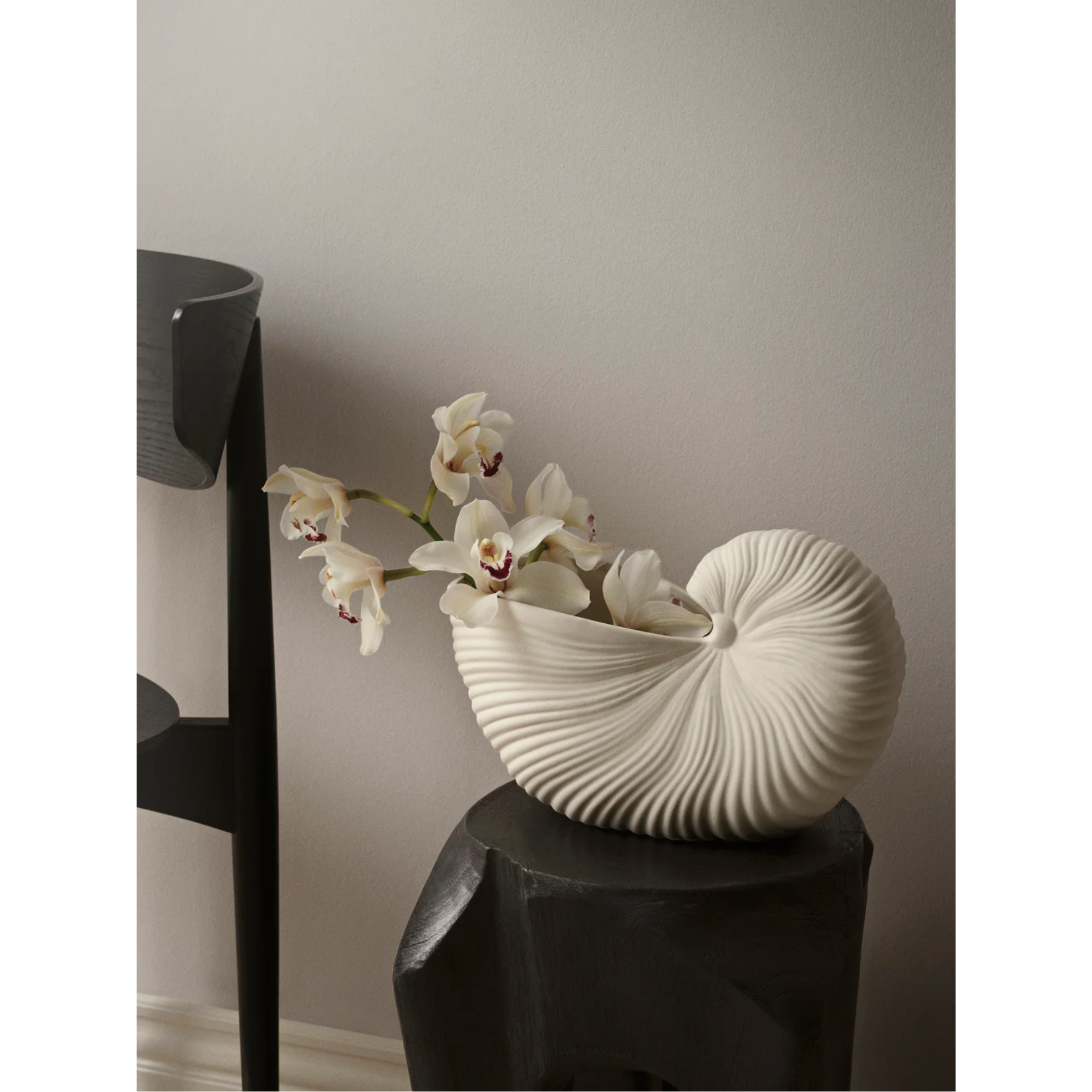 Filled with your favourite flowers or by its own, this pot shaped like a nautilus shell merges natural shapes with contemporary design. With a matte outside and glazed inside, it adds delicate detail to any room, simple and sculptural all at once.