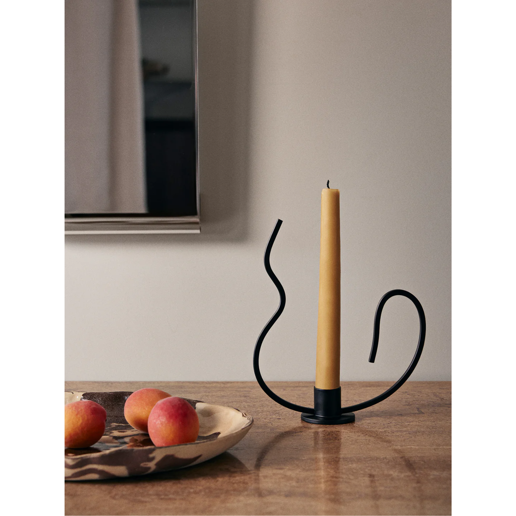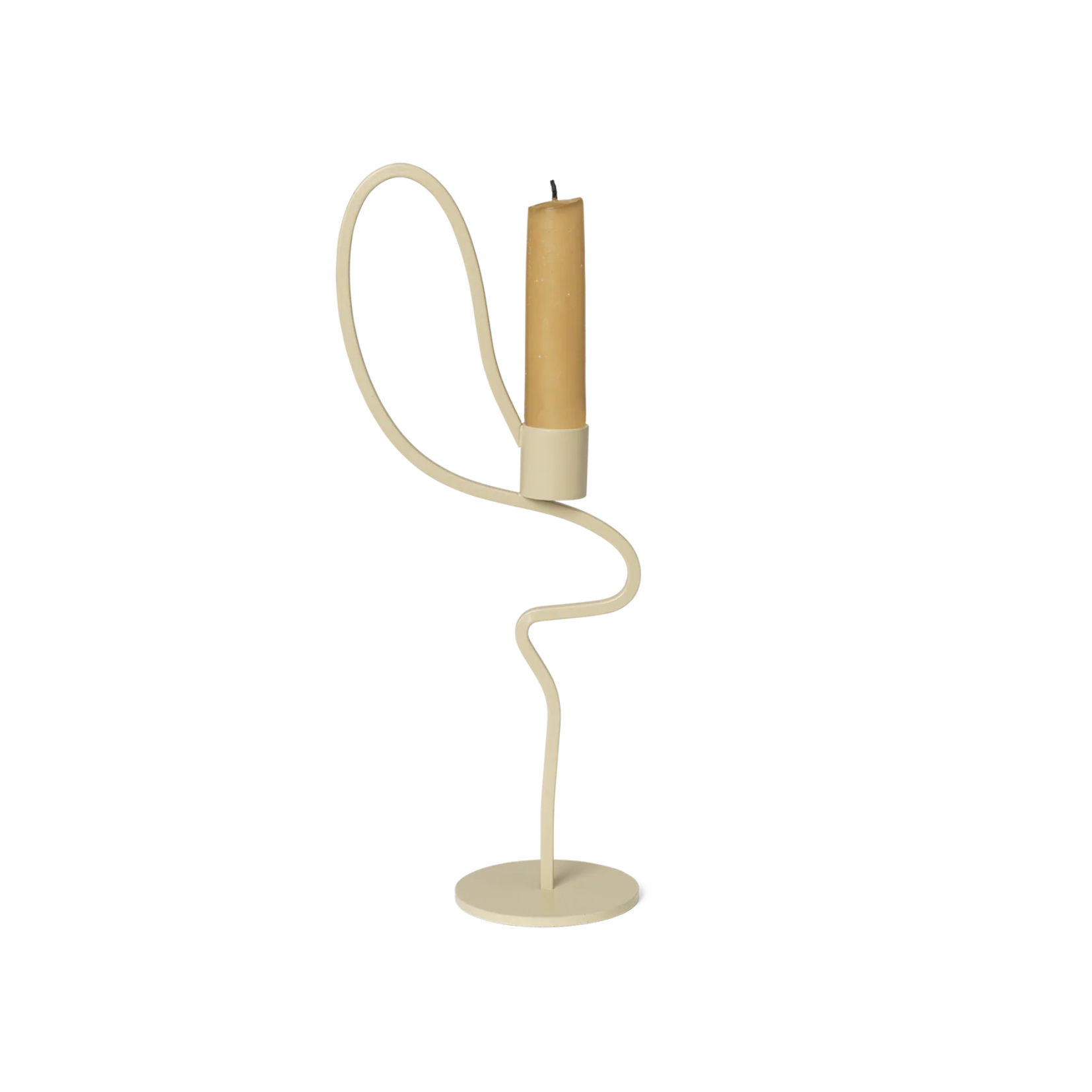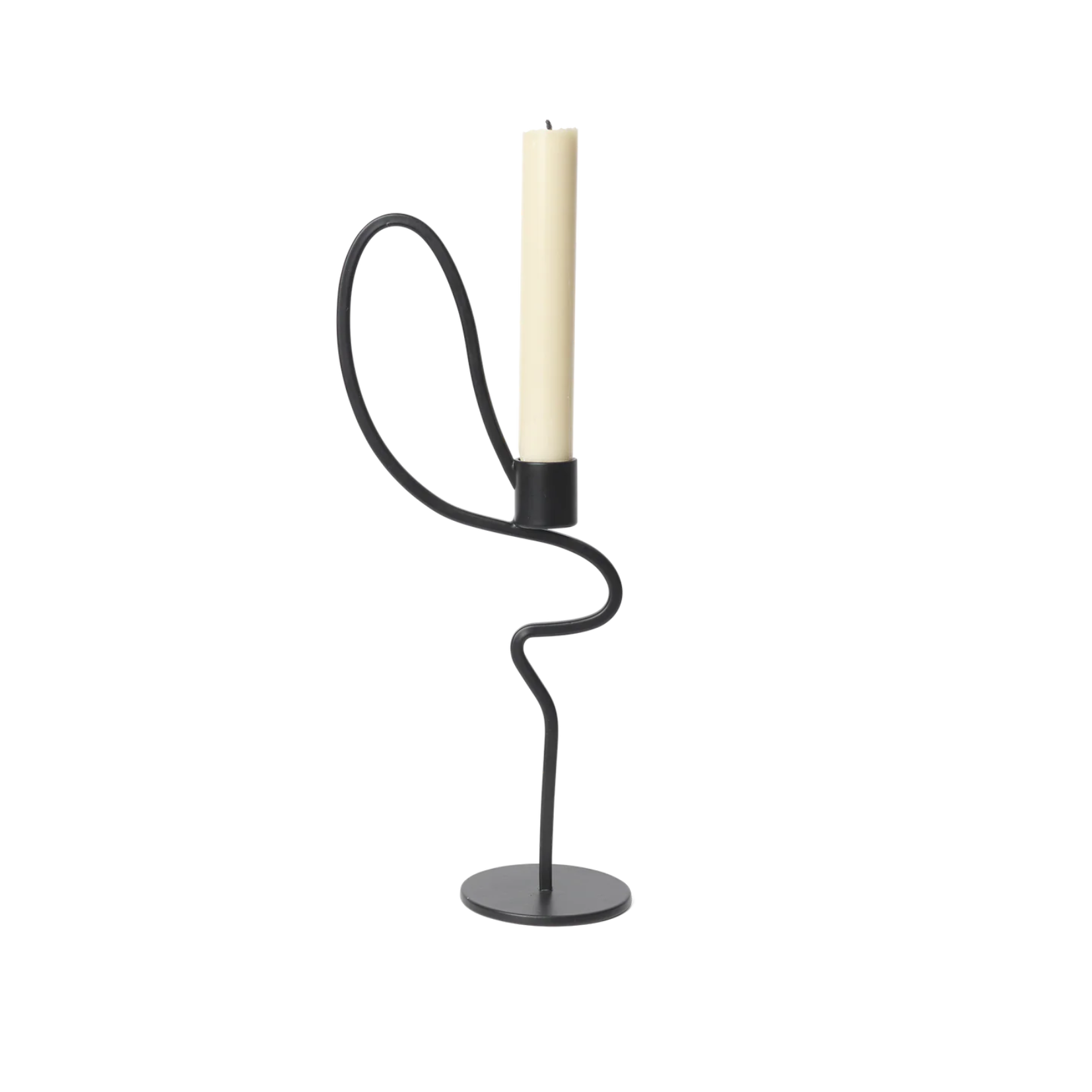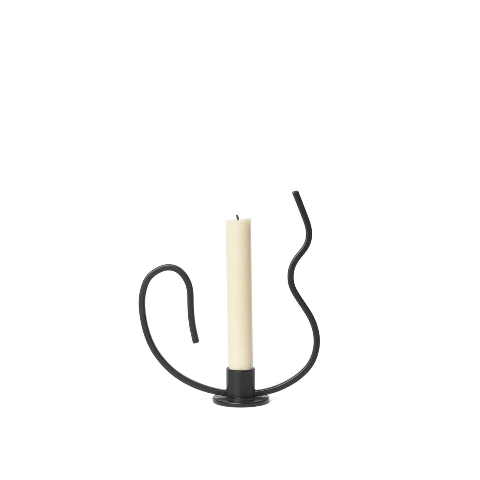 As if frozen mid-dance, the Valse Candle Holder has a fluid and wavy form. Taking inspiration from the graceful movements of the Waltz dance, this piece is crafted from powder-coated iron and has an elegant shape, featuring a curved metal rod that invites you to hold and move the candle holder around with you.