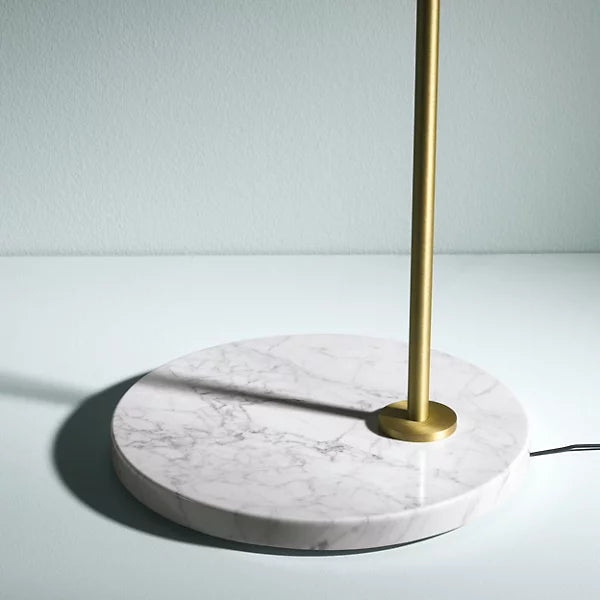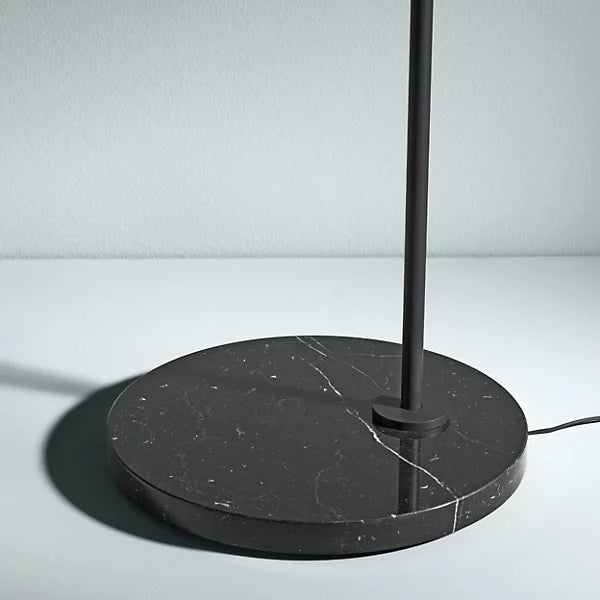 The Captain Flint Floor Lamp from FLOS, designed by Michael Anastassiades in 2015, embodies sleek sophistication with versatile functionality. This dual-purpose lamp seamlessly transitions between providing reading or ambient light, offering adaptability for various settings. It exudes understated luxury with a spinning cone diffuser at the top for adjustable direct lighting and a weighted Italian white Carrara or black Marquina marble base. Anastassiades aimed for balance, creating a finely crafted piece that delicately balances form and function, offering both ambient illumination and a dimmable reading light.