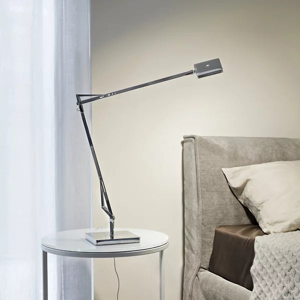 Designed by famed Italian architect, Antonio Citterio, the Kelvin Edge Table Lamp by FLOS blends function and efficiency into an alluring minimalist fixture. This piece features an Aluminum Painted or Chromed body (depending on selected finish) with conveniently adjustable joints that culminates in a compact photoengraved die cast head. Equipped with exclusive Edge Lighting technology which employs innovative technology for a balanced, yet robust illumination. Available in a variety of mounting options for added versatility.