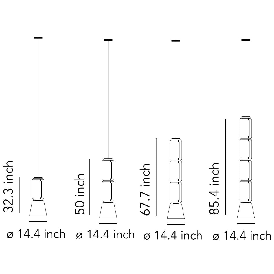 Dimensions1 Cylinder Option Canopy: Diameter 7.28"1 Cylinder Option Fixture: Height 32.28", Diameter 14.37", Weight 23.58Lbs1 Cylinder Option Maximum Hanging: Length Adjustable From 38.28", Adjustable To 189.68"2 Cylinder Option Canopy: Diameter 7.28"2 Cylinder Option Fixture: Height 50", Diameter 14.37", Weight 32.4Lbs2 Cylinder Option Maximum Hanging: Length Adjustable From 56", Adjustable To 207.4"3 Cylinder Option Canopy: Diameter 7.28"3 Cylinder Option Fixture: Height 67.72", Diameter 14.37", Weight 41.22Lbs3 Cylinder Option Maximum Hanging: Length Adjustable From 73.72", Adjustable To 225.12"4 Cylinder Option Canopy: Diameter 7.28"4 Cylinder Option Fixture: Height 85.43", Diameter 14.37", Weight 50.04Lbs4 Cylinder Option Maximum Hanging: Length Adjustable From 31.43", Adjustable To 242.83"