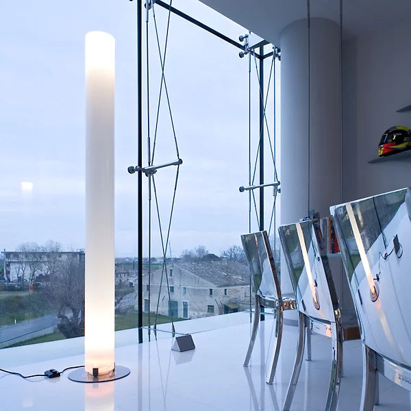 Originally conceptualized by Achille Castiglioni in 1984, the Stylos Floor Lamp from FLOS emanates a captivating simplicity that defies convention. This halogen floor lamp boasts a unique design, with illumination emanating from the column base and diffused light softly glowing through the top via an incandescent bulb. Each bulb operates independently, controlled by separate switches for customizable lighting. Finished with silver, the metallic base ensures stability, while the halogen source emits diffused and reflected light. Castiglioni's design ethos, inspired by everyday materials, shines through in this minimalist masterpiece, epitomizing his "less is more" philosophy. Specifications- Designed by Achille Castiglioni in 1984