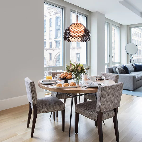The Tatou Pendant gets its name from the French for armadillo, a tribute to the unassuming animal whose brilliant structure keeps it protected and makes it unique. The Tatou offers diffused light and has an exterior diffuser in polycarbonate with an internal diffuser in injection-printed opal polycarbonate.