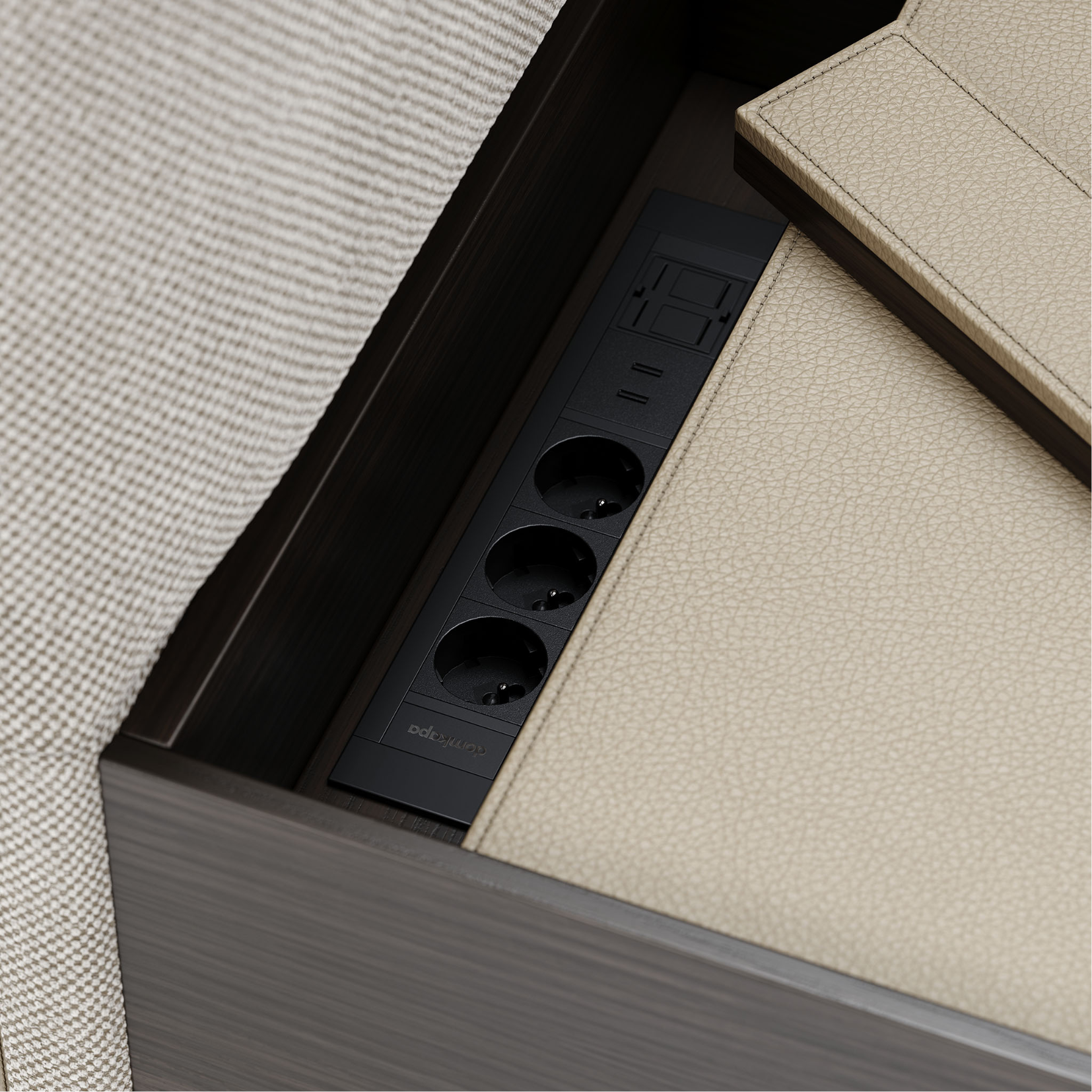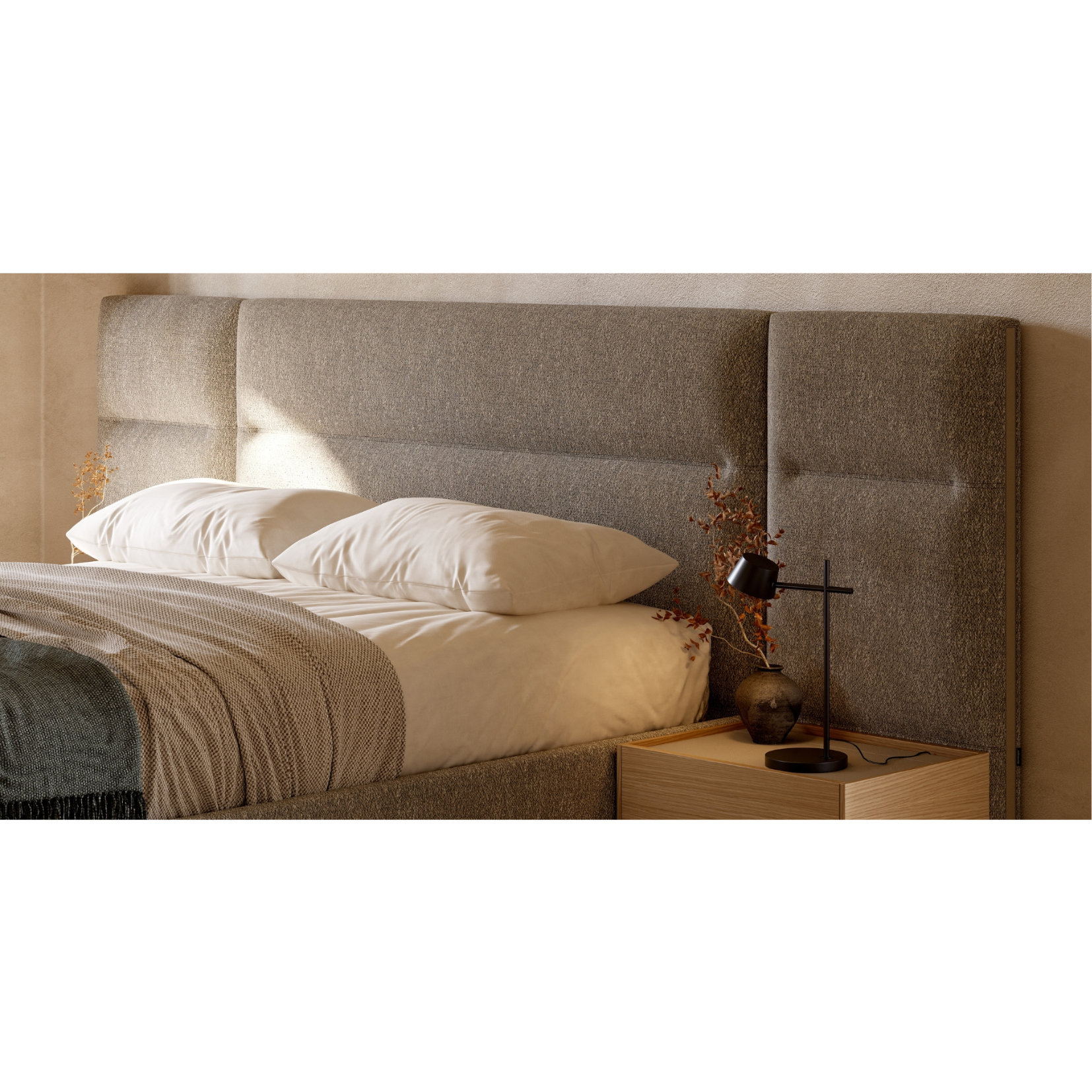 Versatility defines the Francis Modular Bed. With three types of extension panels—upholstered and wood veneer—available in two different sizes, this piece easily adapts to various configurations and spaces. The upholstered details, including the horizontal pull effect on both the bed and panels, add a touch of sophistication. The bed base comes with a lift-up storage option for extra functionality, while the integrated bedside table discreetly accommodates built-in lighting and charging connections.