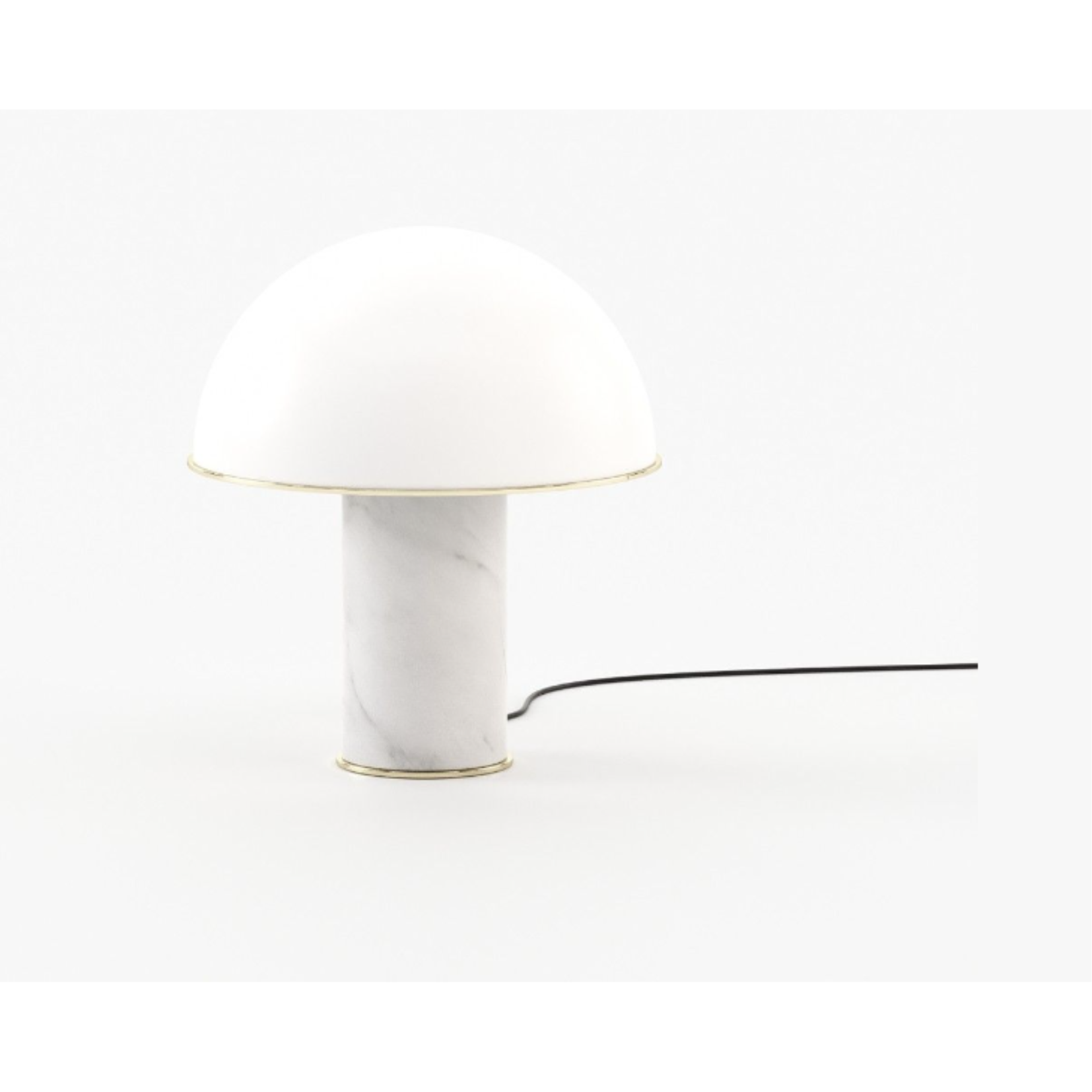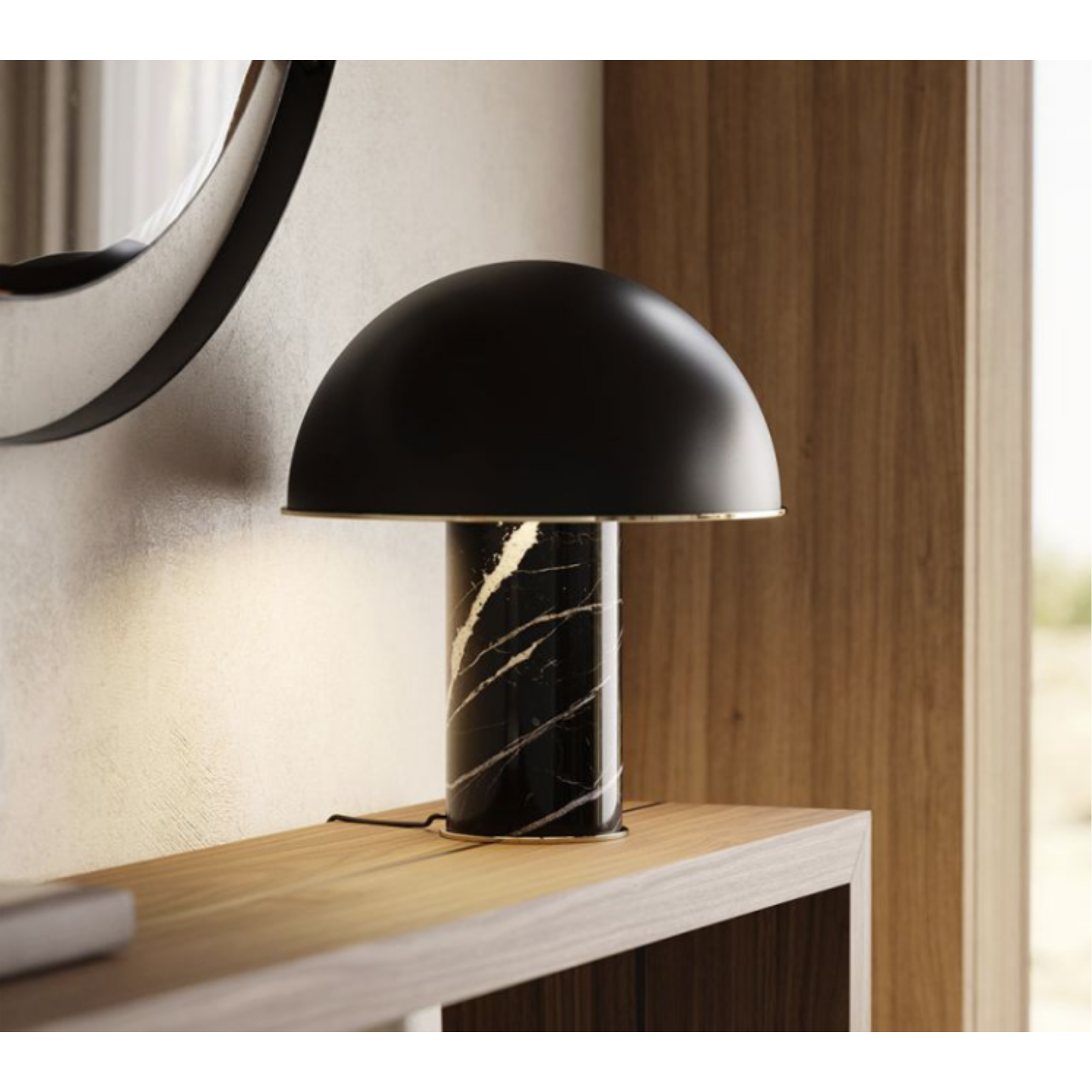 This mushroom table lamp, Franklin, showcases a sophisticated design with curved lines and noble materials. Perfect for creating unexpected focal points, it adds elegance to living rooms, entrance halls, or as a stylish bedside table lamp.