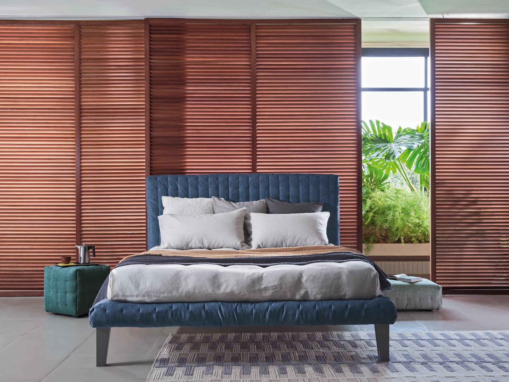 Thanks to its soft and welcoming volumes, Dot bed is suitable for every context. The bed features headboard and frame with removable cover in quilted fabric. Knock-down bed.