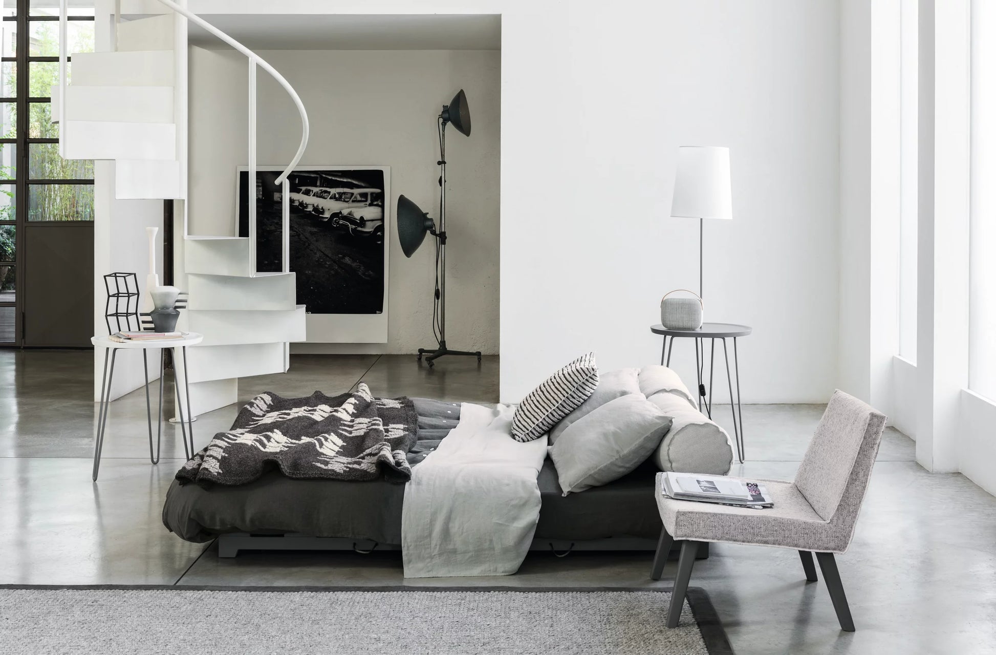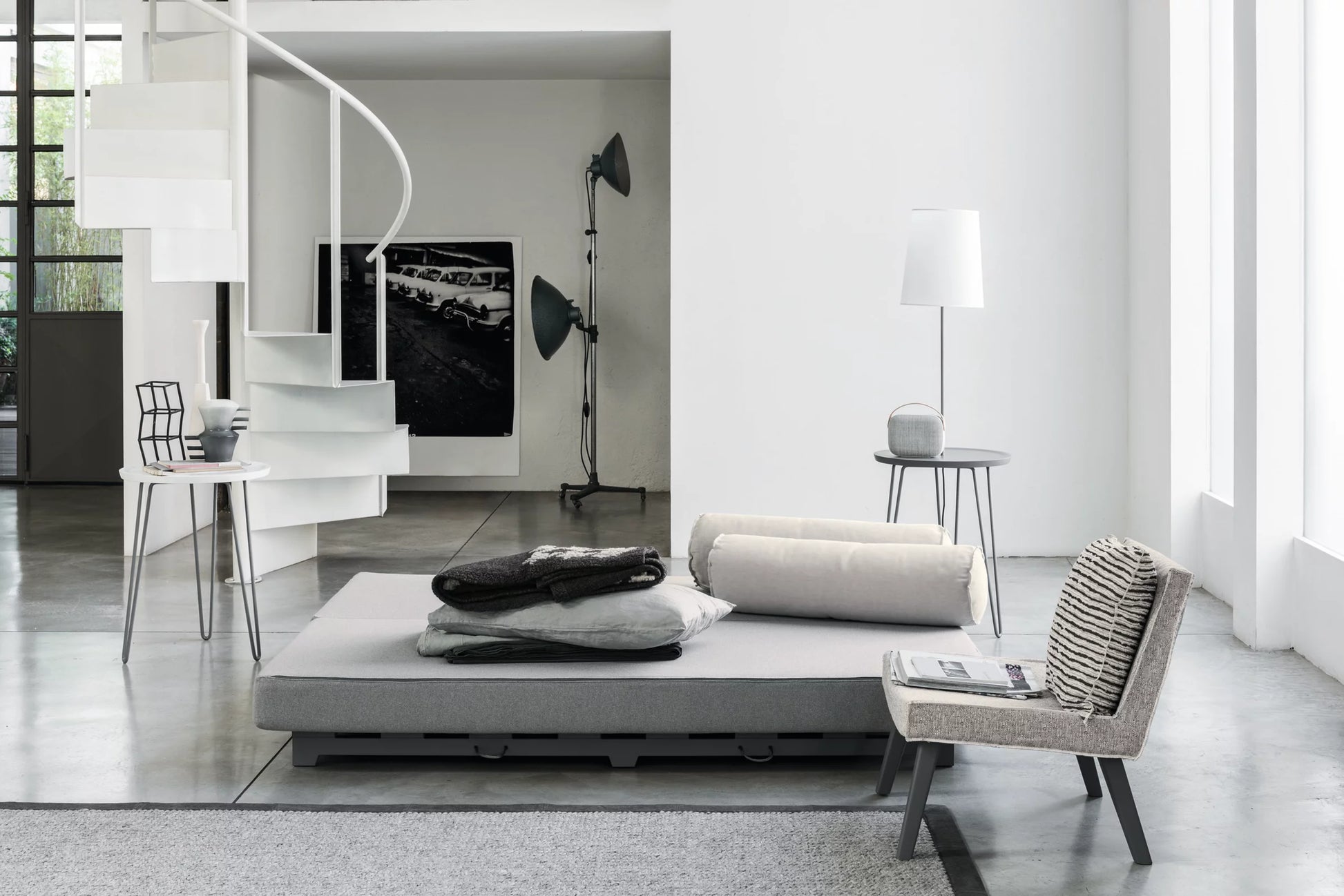 Reinterpretation of the typical oriental bed, the Kubo free-standing bed is all about transformation: the removable slatted base, hidden under the folding mattress, slides with a simple movement allowing you to switch from pouf to single bed and from sofa to double bed. Its versatility and space-saving qualities make it ideal for spaces of all sizes, from the living room, to the study to the bedroom.