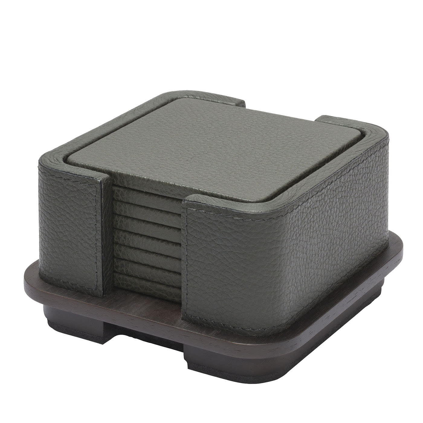 GIOBAGNARA | LLOYD LEATHER AND MARBLE COASTER HOLDER WITH 8 COASTERS | $640.00