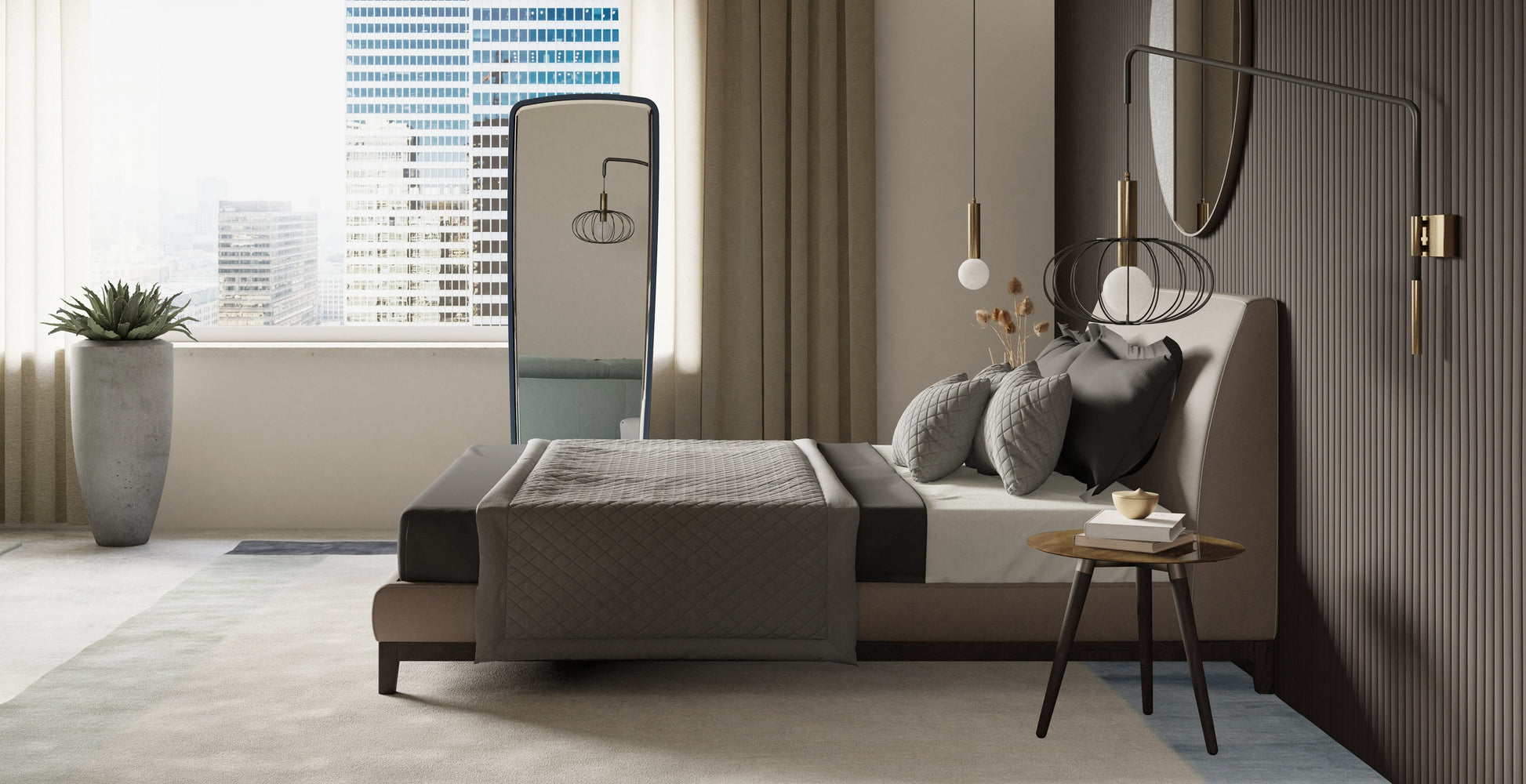 Detail: Bed base and Head Board edge is outlined by a special workmanship, called “STEP” designed by BORZALINO style studio