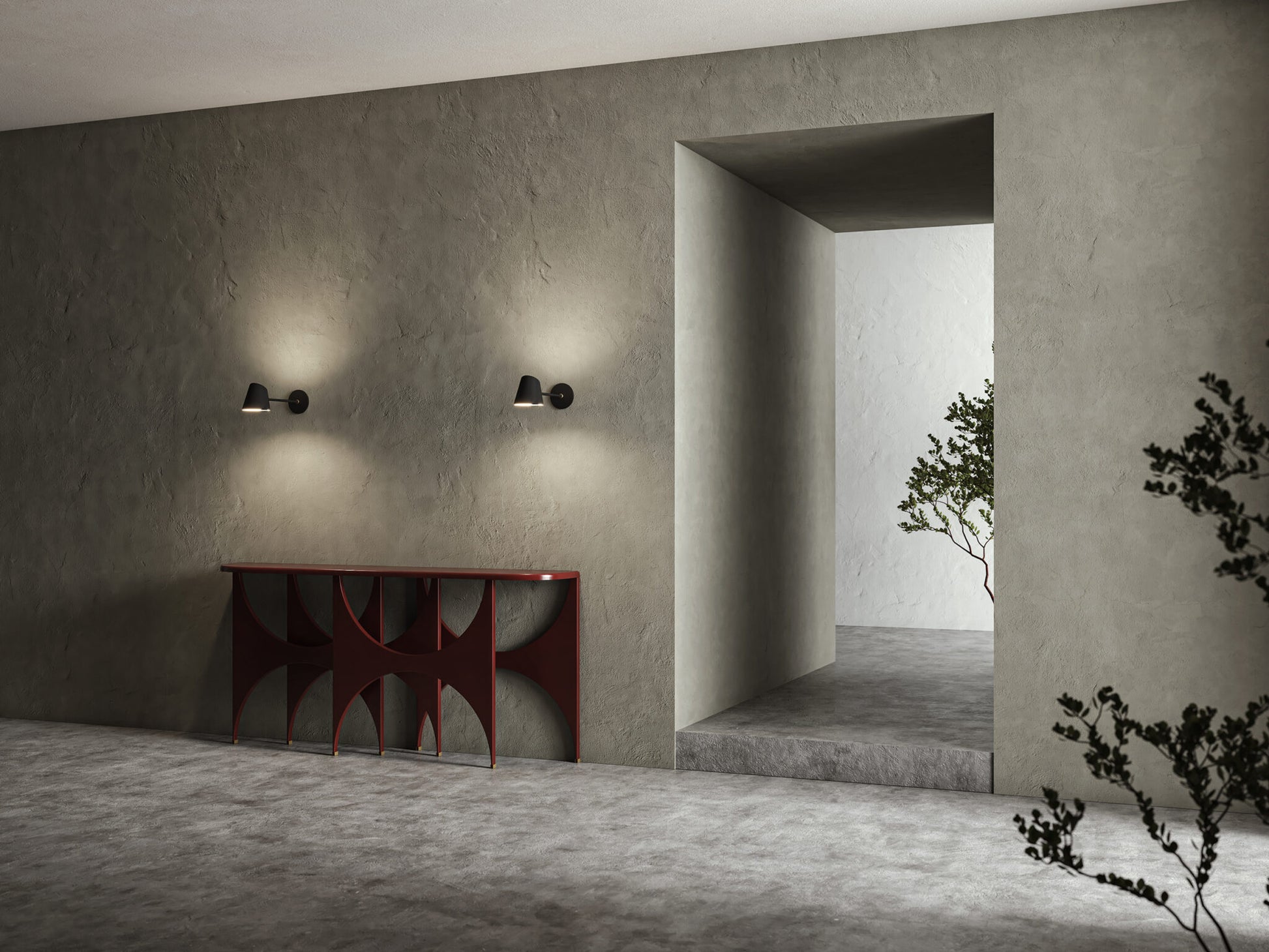 With their two openings, they offer both direct and indirect light to the wall or the ceiling. They accommodate a frosted glass tube that diffuses the light from a mini LED or Halogen bulb.