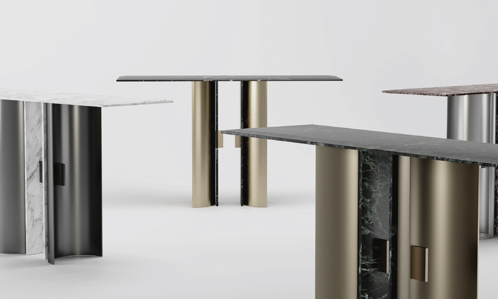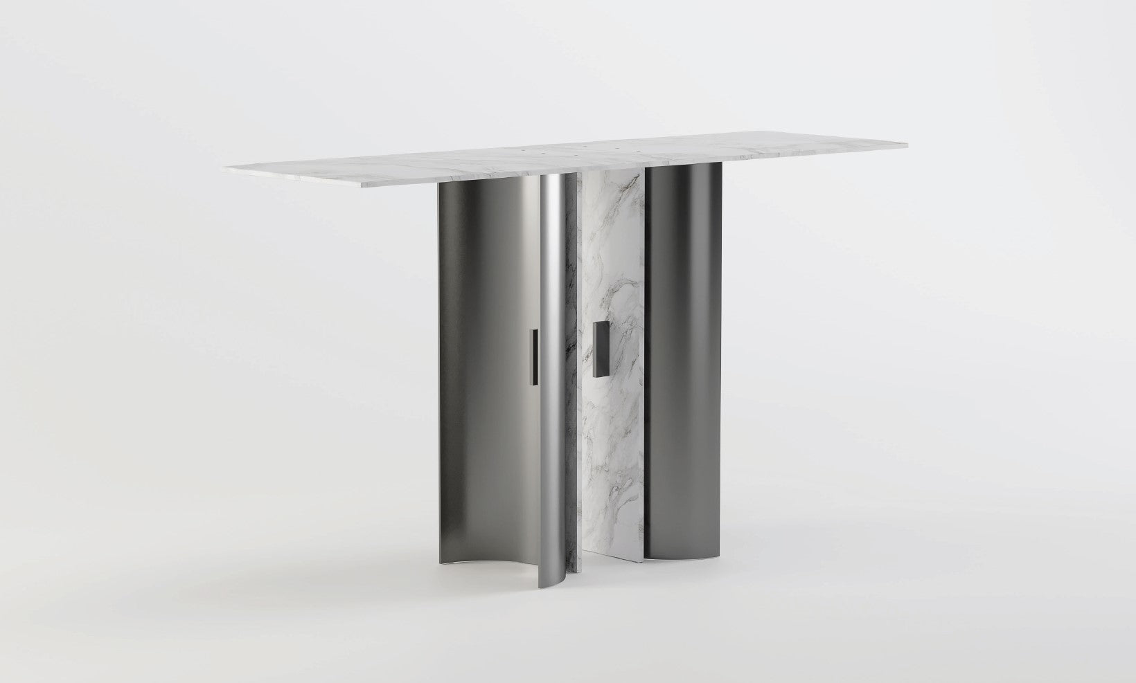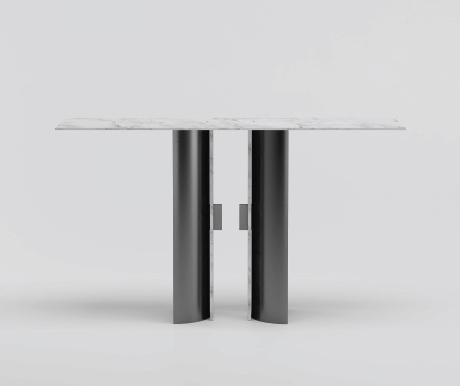 Console by Emanuele Santalena. MATERIALS: Black Metal, Calacatta marble.