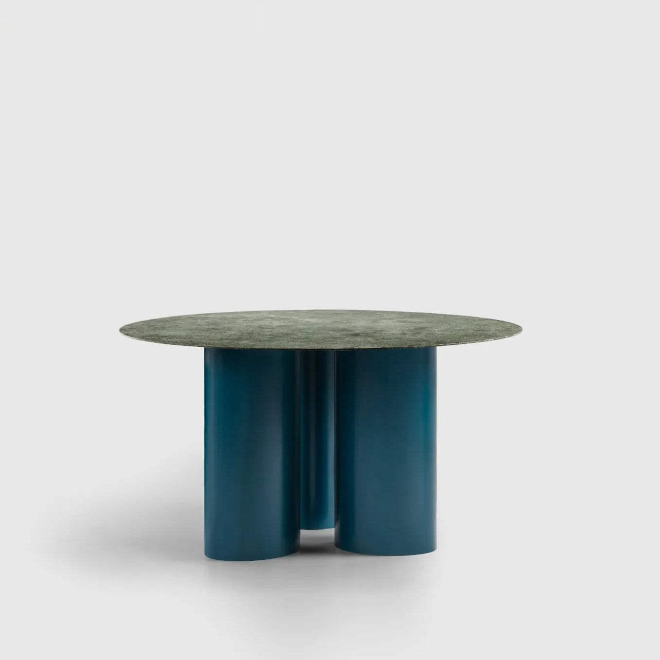 Indoor-outdoor round table, elongated and curved cylindrical legs, available with steel top or with other tops of the DAA collection