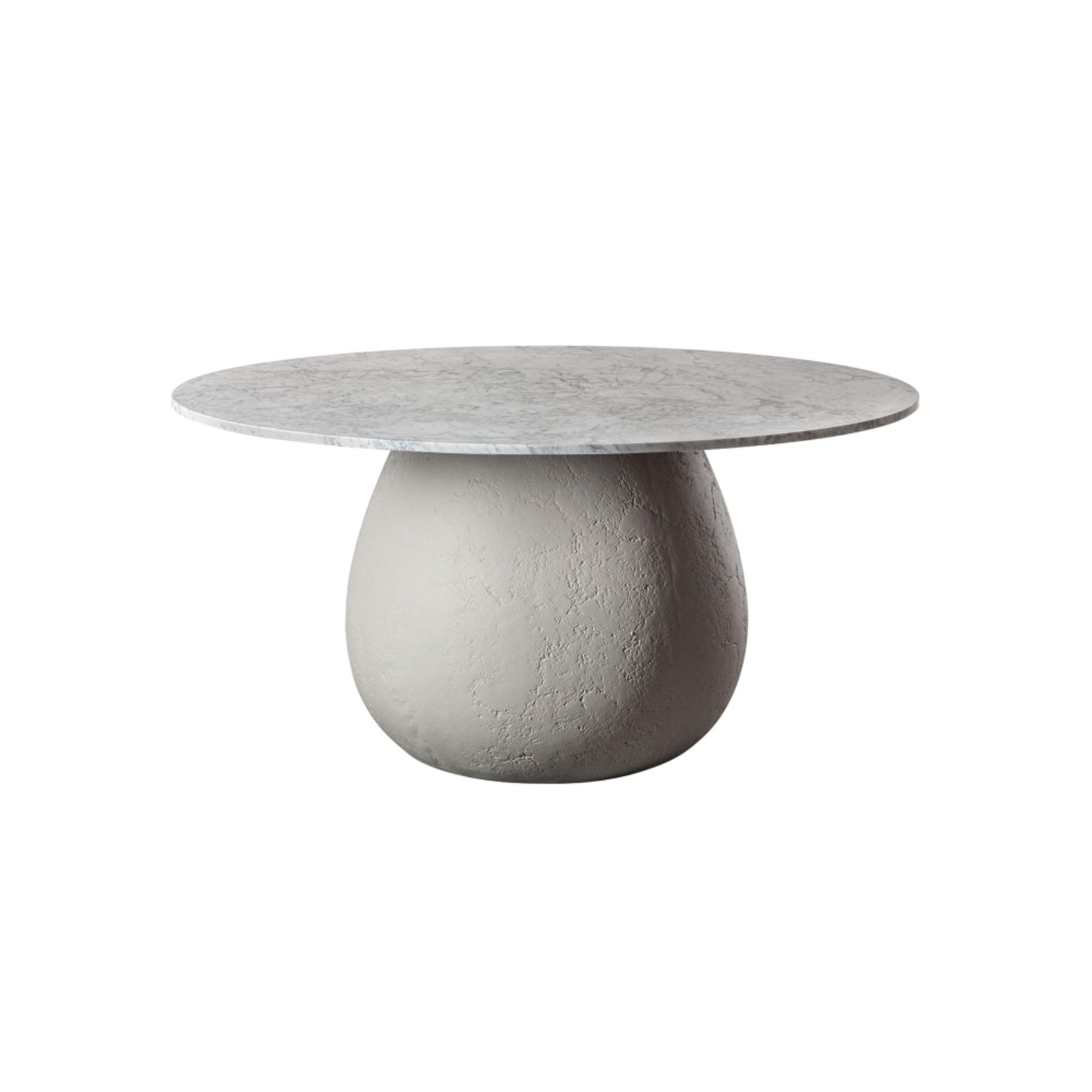 The 834 dining table is created by designer Paola Navone for the Gervasoni brand and is part of the InOut collection. Round table, central base in concrete with crackle finish. Top in white Carrara marble.