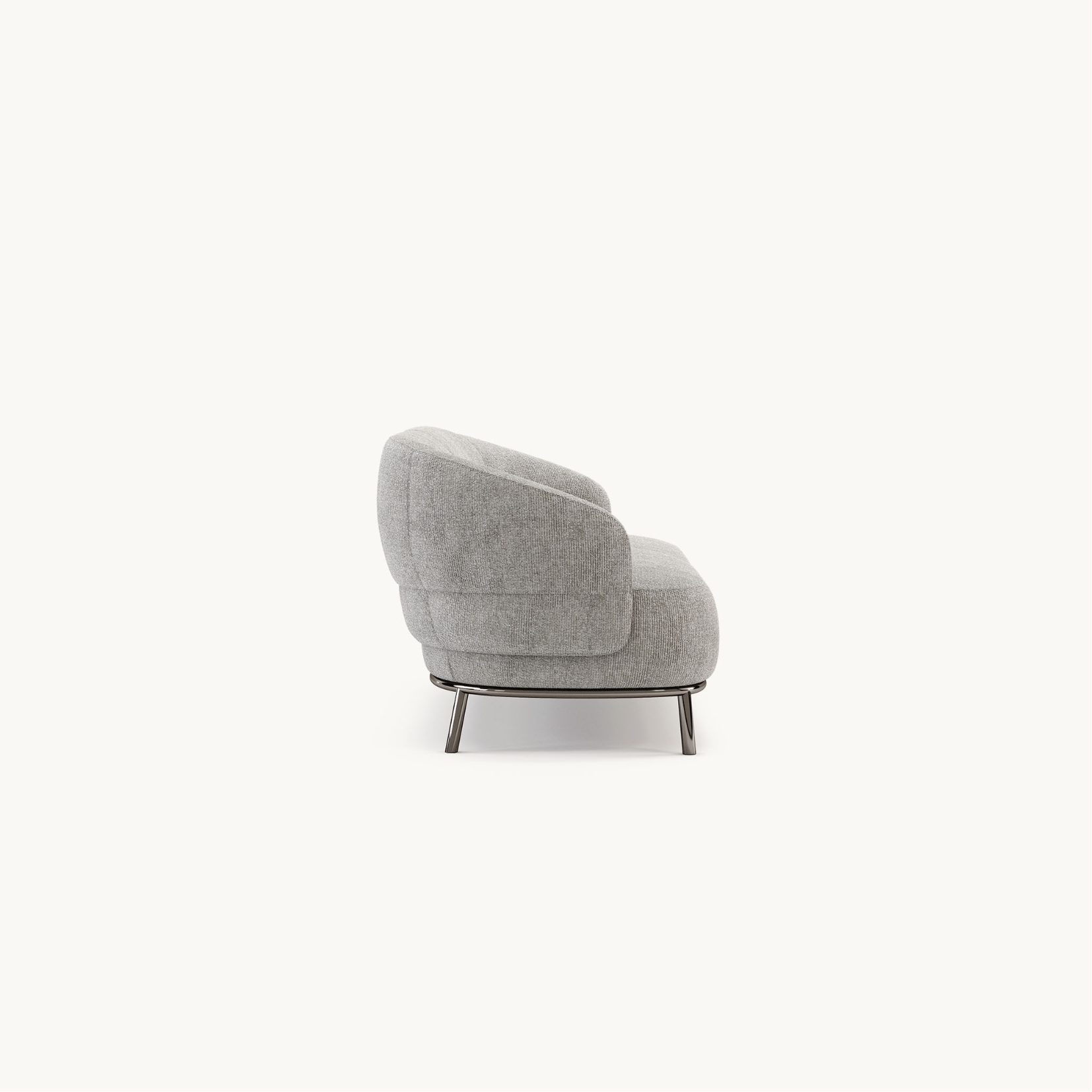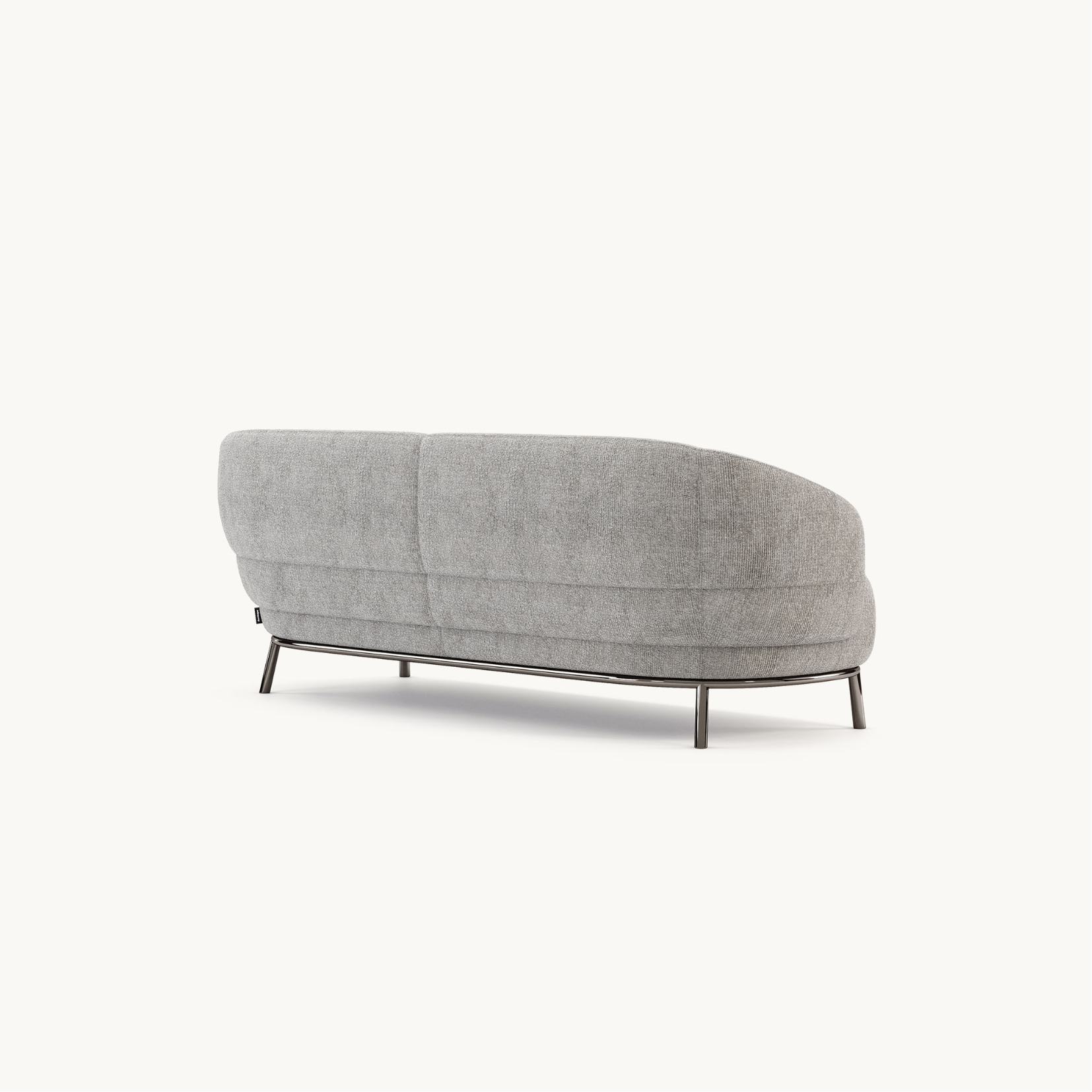 Inspired by a concept of elegance, comfort, and intimacy, the Juliet Sofa is a beautifully rounded piece supported by four steel legs and tubing.