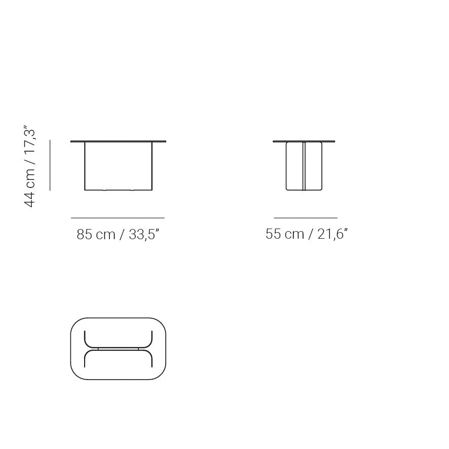 Create your ideal look by combining the top with the different finishes available. Translucent glass brings lightness to the table with a modern look, while porcelain or marble adds elegance to contemporary decors. The metal base can be finished in a timeless black or white lacquered finish, as well as modern metallic tones.