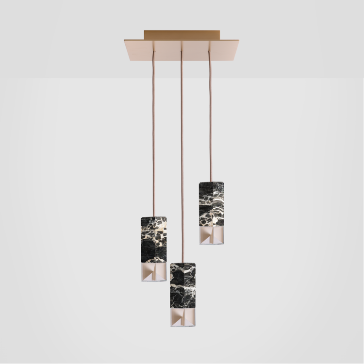 Portoro Gold marble, also known as “Black & Gold marble”, is the protagonist of this Formaminima Limited Edition, dedicated to this evergreen luxurious decorative stone. Recalling the ancient heritage of the Roman Empire, its quarries belong to the beautiful “Gulf of Poets” of Portovenere in Liguria-Italy. This prestigious polychromatic marble features a velvety intense black background, enriching and exalting the chromatic contrasts of large yellow-gold veins.