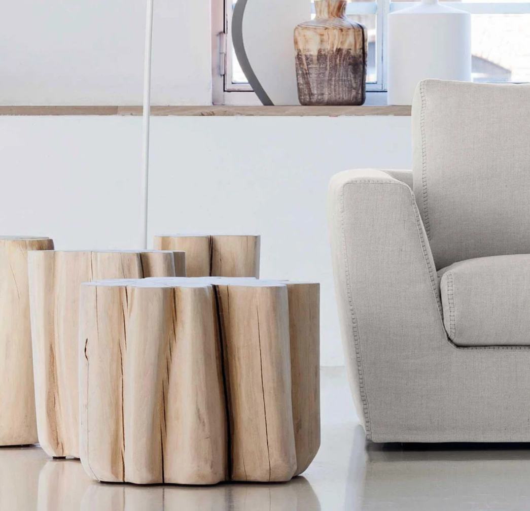 A family of poufs with Nordic suggestions, Brick XS/S/M/L are made from a section of debarked hornbeam trunk. Available in different heights and diameters, these are products with a contemporary charm, which aim to enhance the naturalness of wood. Natural barked hornbeam trunk section. Technical features related to our wooden stools, table base and coffee table made in hornbeam wood. The wood is barked on its natural shape, that means: > shape: the perimeter can change from “nearly round/oval” to a “petal shape”; > finish: the stools/bases are completely natural, it means that they are just barked. Their finish can change from “cleaned/bleached” to “dark spots finish”. Even if the material is previously dried, the trunks can have some visible cracks already by buying them or later on after using them. Being the stools a completely natural product characterised by all the above mentioned features, the images of the catalogue suggest an indication only. We cannot grant that the final products will be exactly the same as represented in the catalogue.