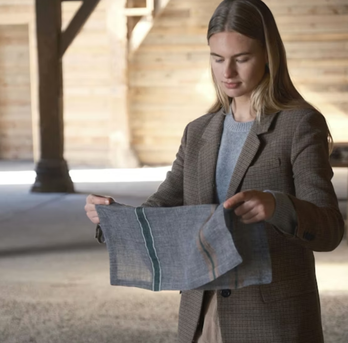 The Arlo napkin carries the same open-weave striped charm as the pièce de lin. It shares the green, black & brown stripe, while its second stripe combines green, black & bone.