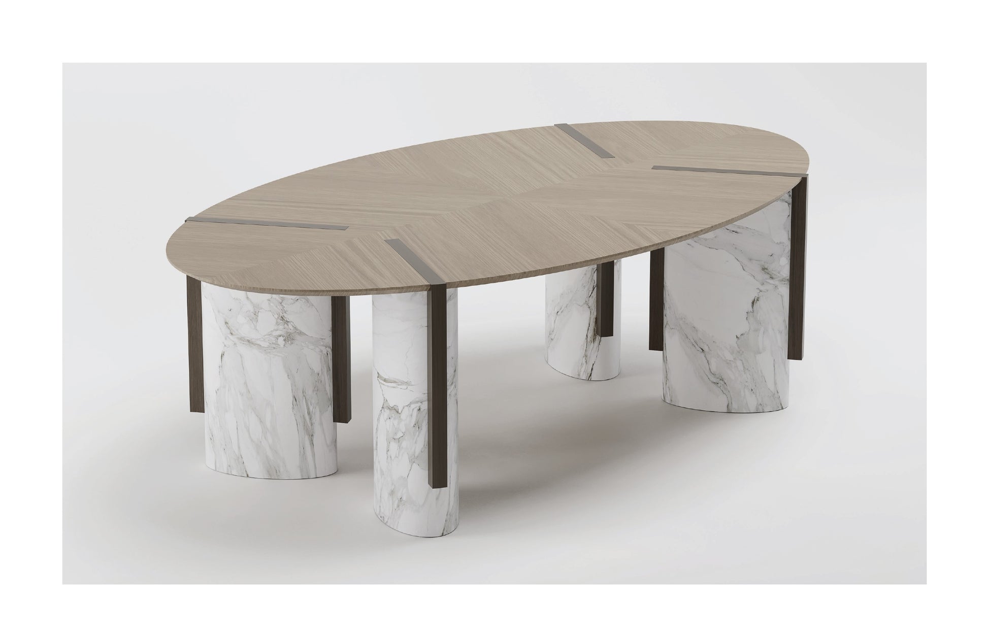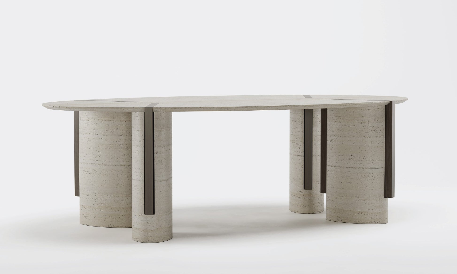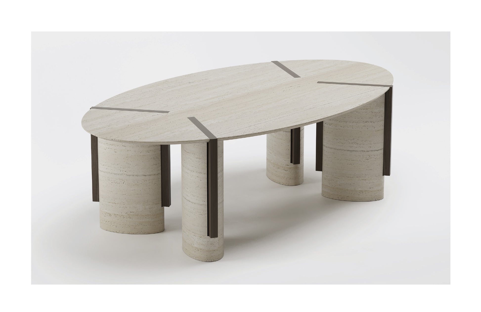 Dining Table by Emanuele Santalena. MATERIALS: Travertine, Dark Wood.