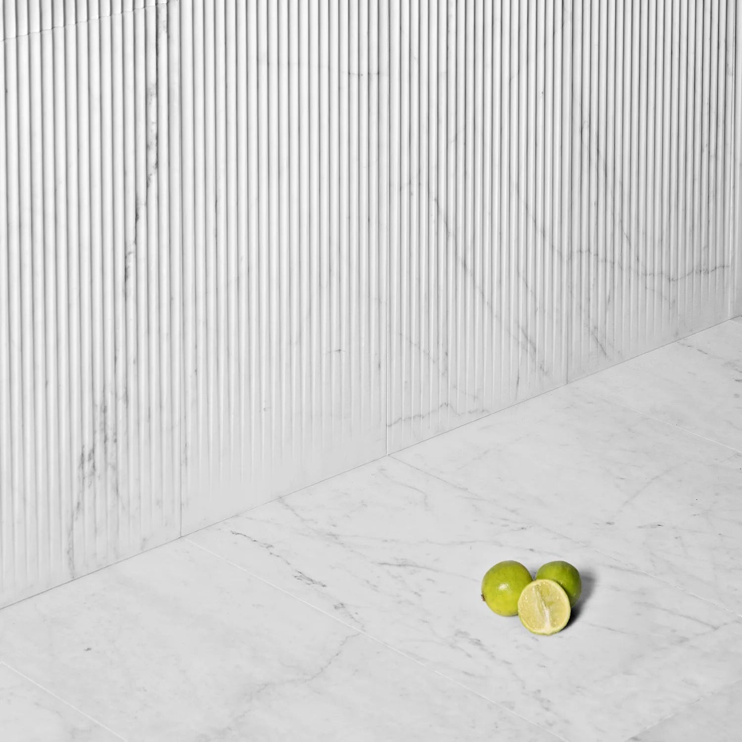 Column and marble have ideally become synonymous, making the column an indispensable element in any project with marble. As part of our cladding, the column is transferred to a flat surface and its flutes perfectly match the marble top. With its connection to architecture and history this texture updates an ancient idea. With its peculiar dissolving effect, the slab looks modern and playful.
