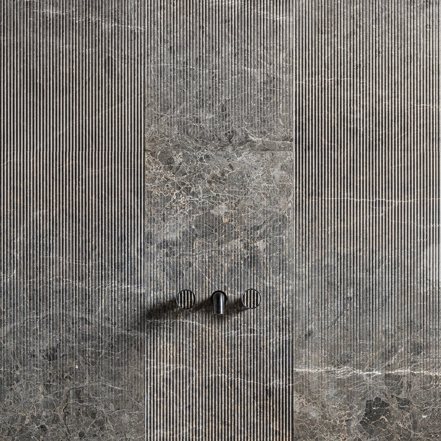 This texture pays homage to the local Tuscan history and gives a modern twist to a classic texture widely present in architecture. Its sharp triangular shapes recall mountain peaks. Its lines, whether used horizontally or vertically, create an interesting play of light and shadow, just as the sun does on valleys and mountains. Peak is one of the variants of the Fade collection and its ability is to shift from textured slabs to solid and polished ones. The shadows created give the feeling of living surrounded by marble, alluding to the place where the collection was born.