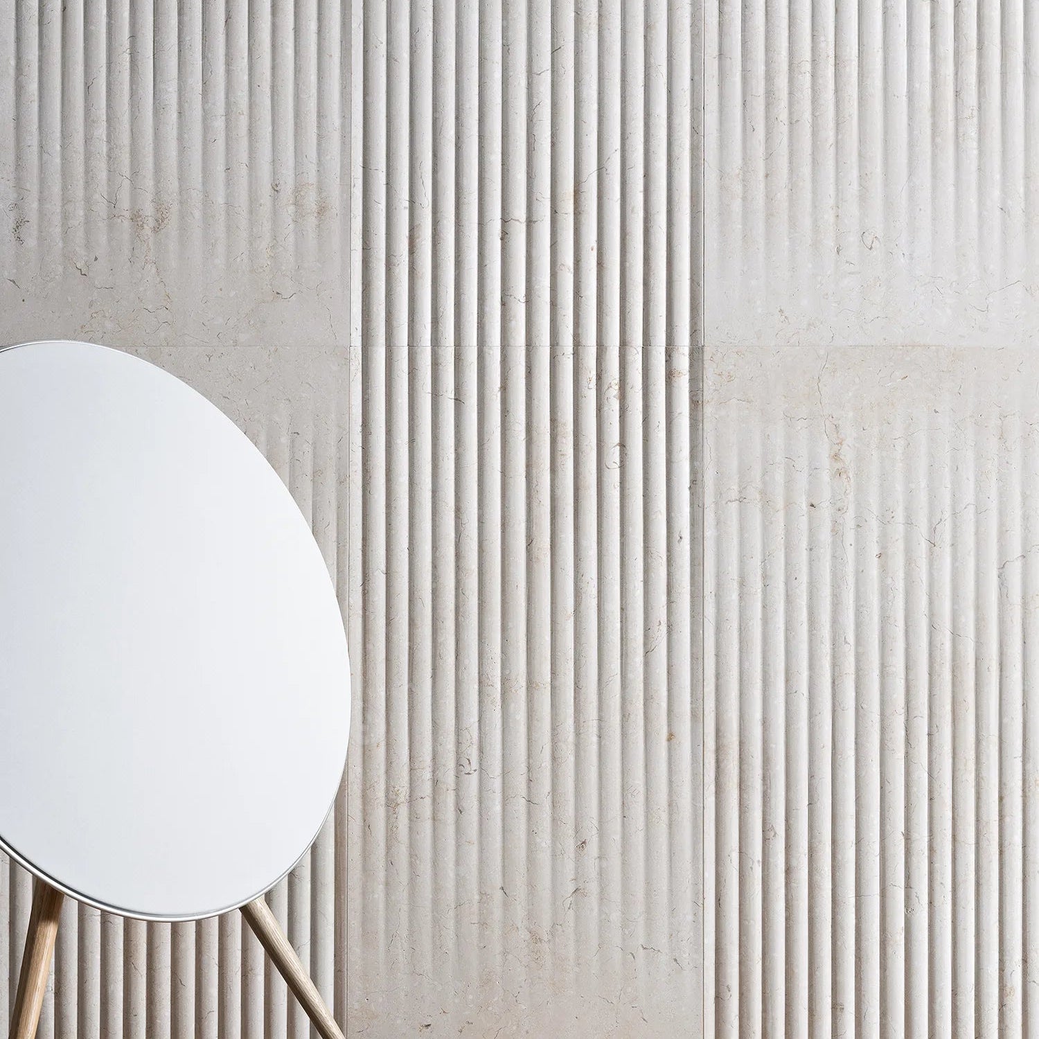 The soft lines created on natural stone recall the soft rhythm of seams. This padding effect gives a feeling of tranquillity and cosiness when used on marble, translating it into something seemingly soft. The ancient notion of material use is transformed, almost subverted. This variant of the Fade collection, creates a transition between bright and dark areas with its soft shape. The perfectly cadenced rhythm of its design allows each piece of marble to show its own characteristics and peculiarities.