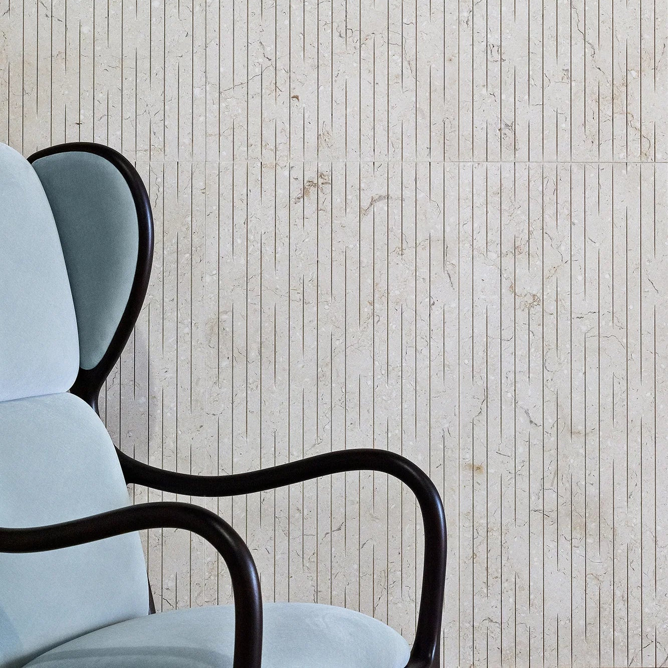 The material is shaped by an ordered architectural idea and interprets a contemporary spirit for home spaces. Discontinuous millings are evidence of precise craftsmanship, shaping a unique product emerging from the brand’s know-how and from a precious and ancient material. Beauty, uniqueness and emotion of stone are found in this product that explores aesthetics and functionality. A wise language expresses a novel and innovative narrative made of visible traces and spaces.