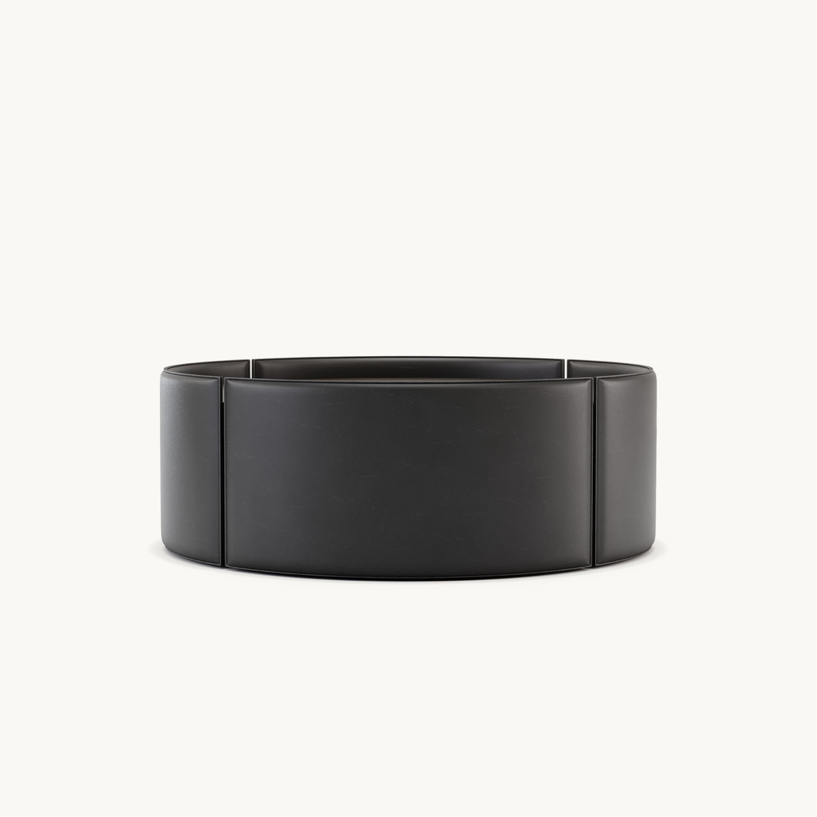 An outstanding piece with striking aesthetic balance and functionality, merging in a harmonious craftwork design. Its round structure is fully upholstered in natural leather while the top features a wooden board. The leather frame included four panels that come together to create a marvelous design and high-end production skills.