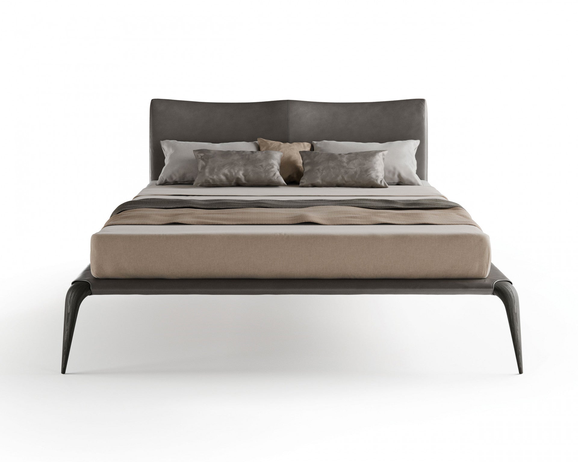 Margareth bed is a well balance mix of elegance and exclusivity, with its light and ethereal design, combined with the most advanced technology materials. The steel head board, covered in fabric seamed on the edges with a sophisticated tailored handcrafted detail, creates a seductive looking. The base in solid wood is upholstered as well with matching fabric and enhances the design of the solid wood foot shape that supports the bed.