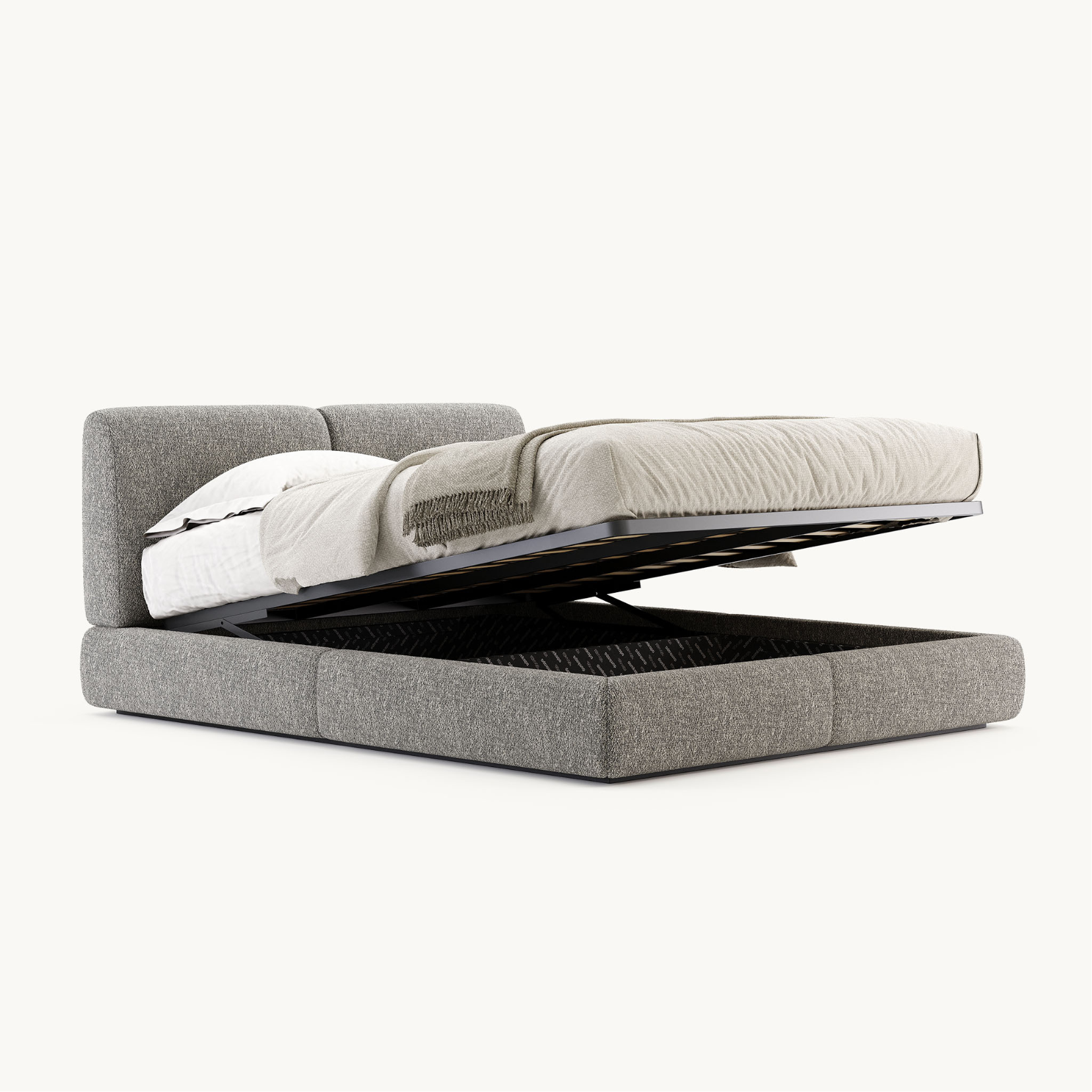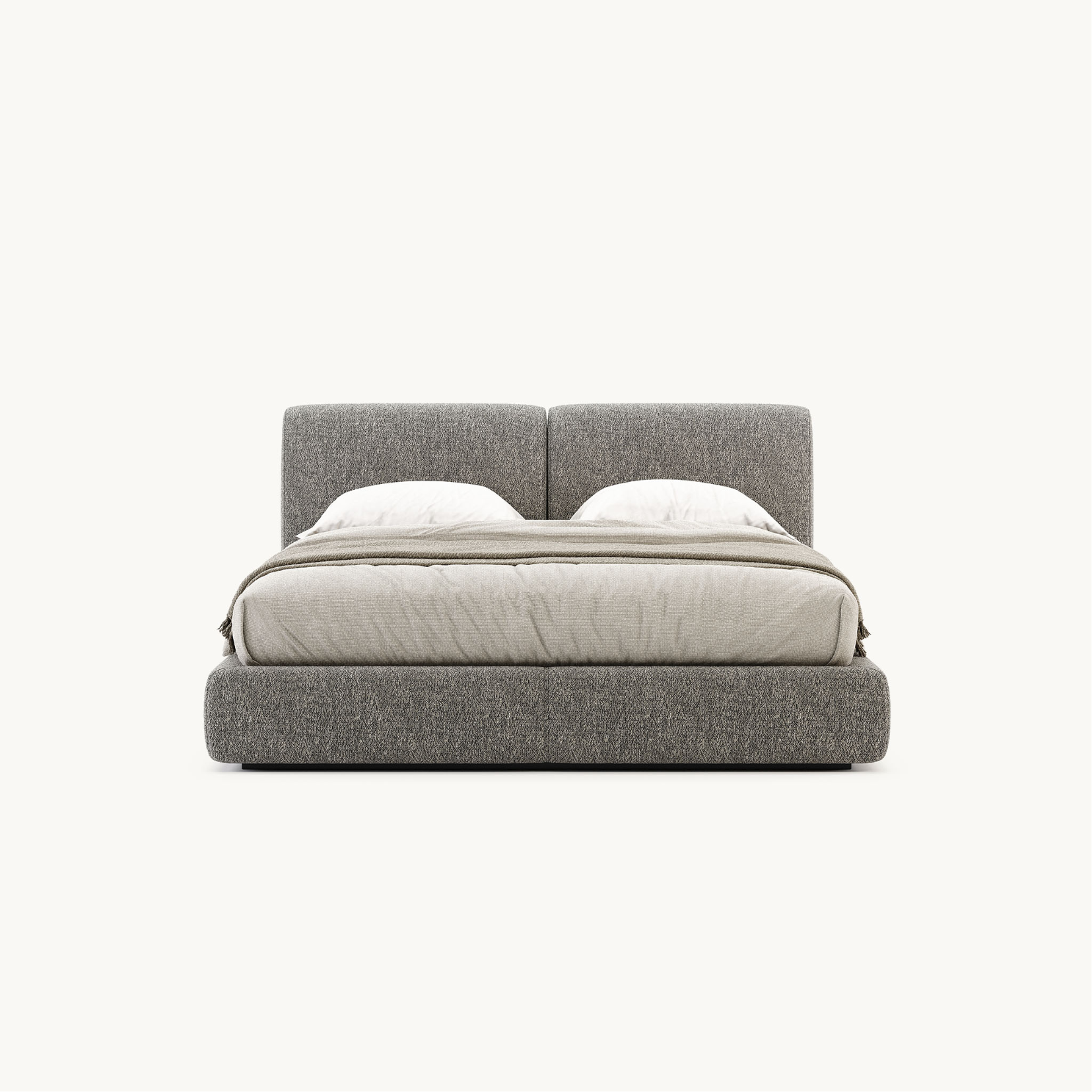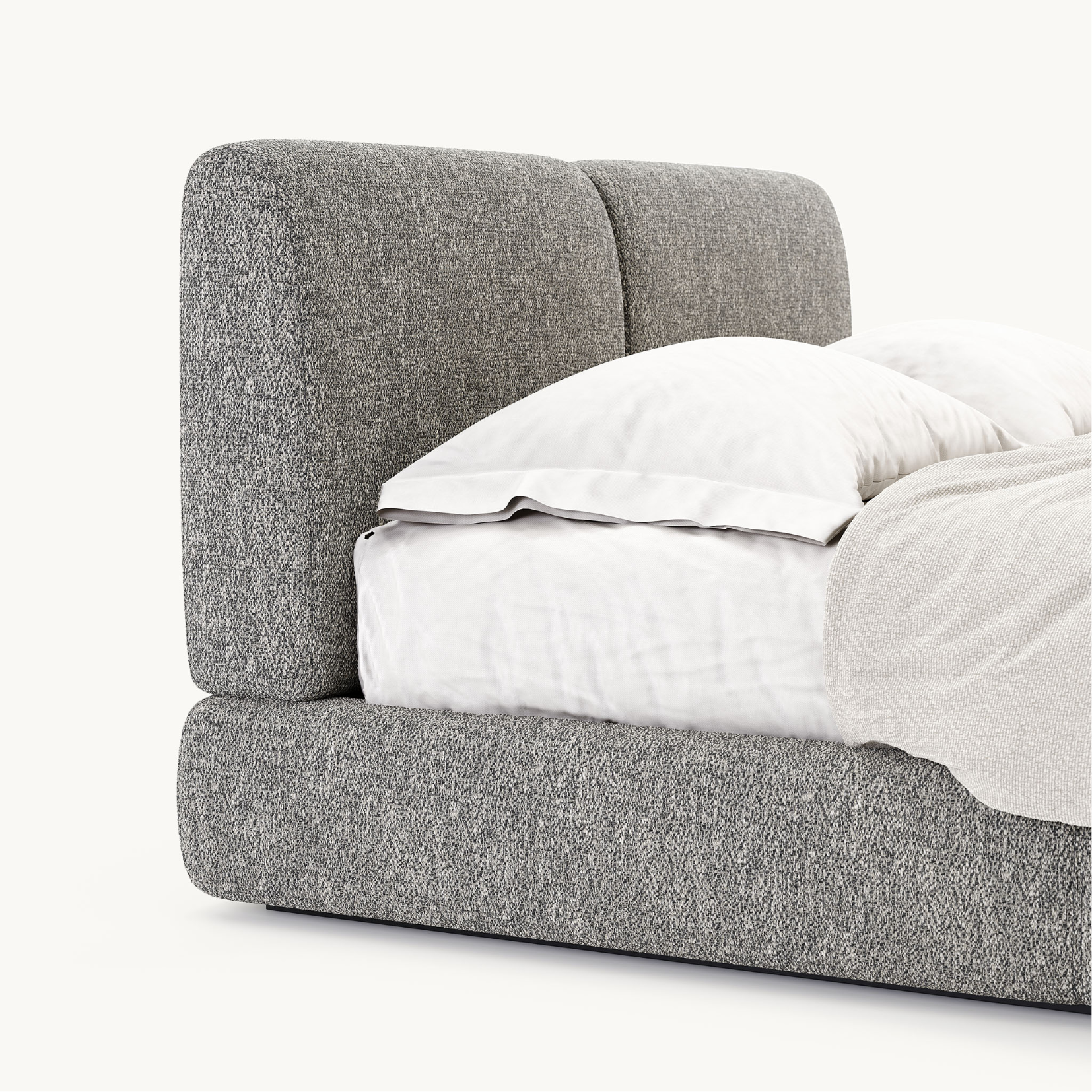 Margot bed is a highly innovative bedroom solution linked to functional and essential shapes, resulting in a unique upholstered piece. The wide and enveloping headboard, with its soft lines and quality details, is divided into two padded sets to favor moments of rest in both domestic settings and public venues.
