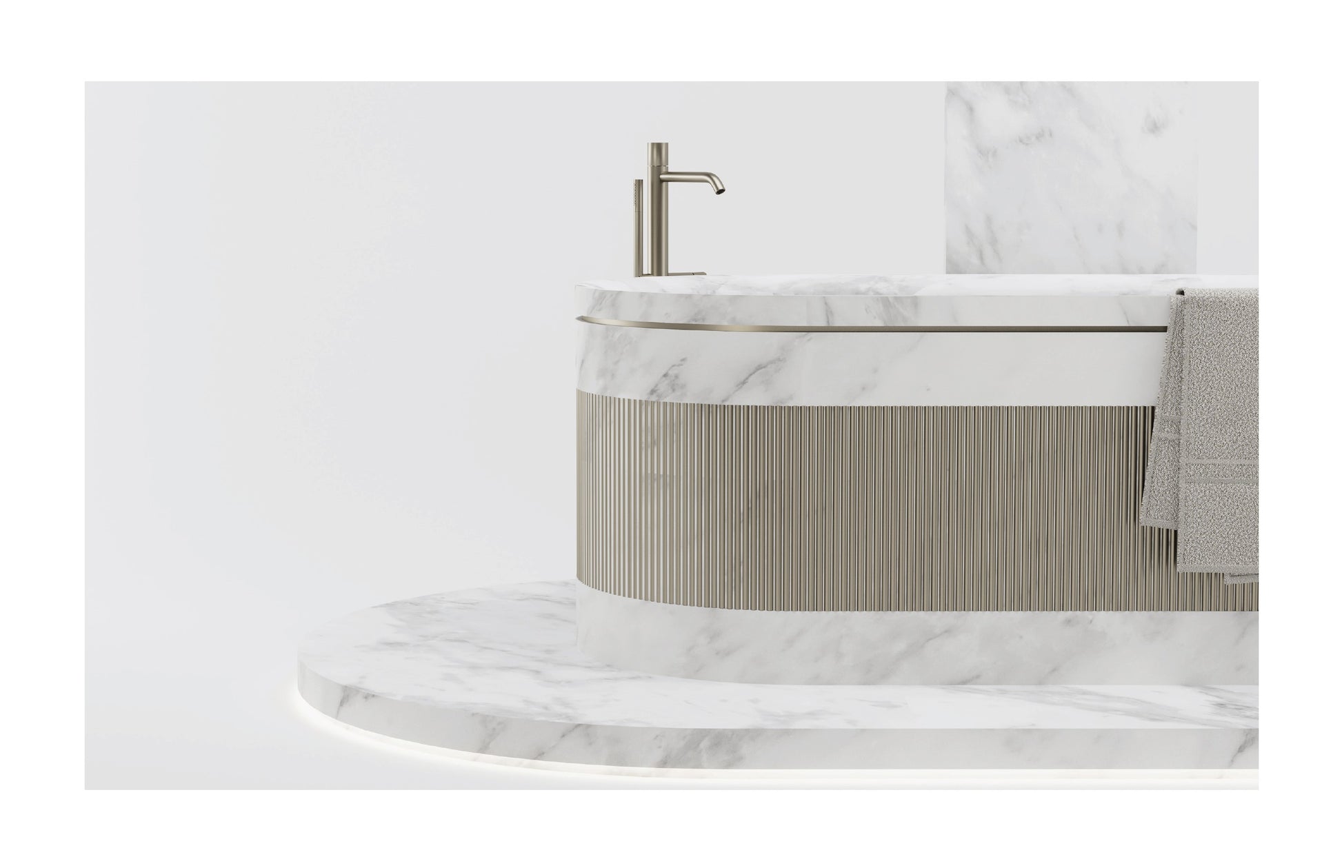 Bath tub by Emanuele Santalena. MATERIALS: Carrara Marble, Brass.