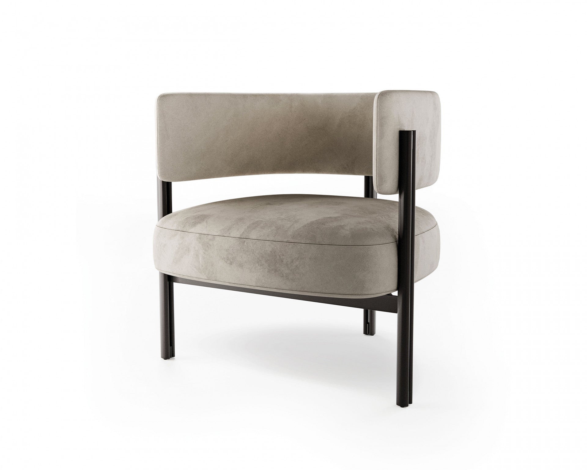 The Monterrey armchair combines the rigor of a technical and metallic structure, characterized by the gleam of gunmetal, with a soft and welcoming seat. The fusion of these two characteristics gives rise to a refined elegance perfect for any space and occasion.
