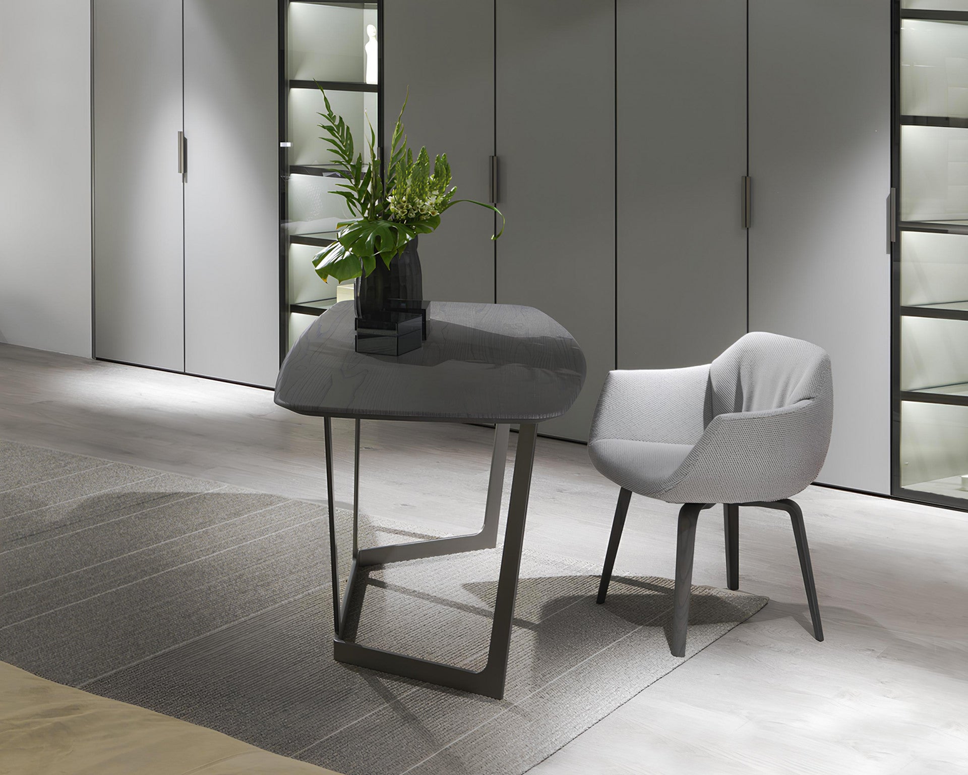 A synthesis of versatility and comfort, the Naos chair is reinvented with a solid wood base. The precious design of the seat suggests a harmonious profile and reveals great attention to the design and compositional elements that make it a highly aesthetic piece of furniture.