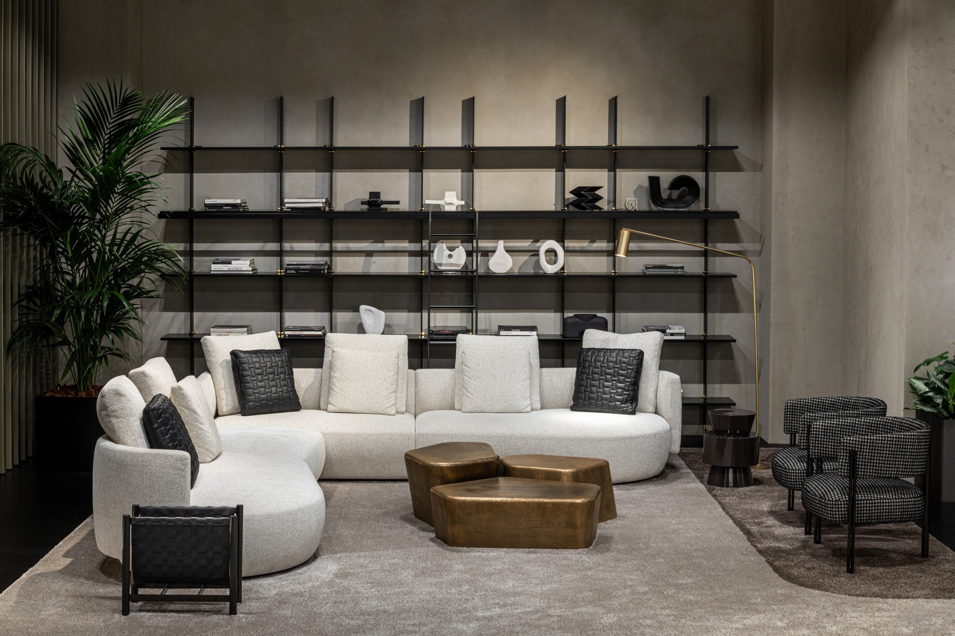 offer compositional versatility resulting in a form that is always fresh and never mundane. The range of modules, including chaise longue, ottoman, and coffee table, covers all the needs of any living space. This sculptural object has its own light thanks to its abundant shapes, representing Studio63’s desire to create an organic system with timeless soft contours.