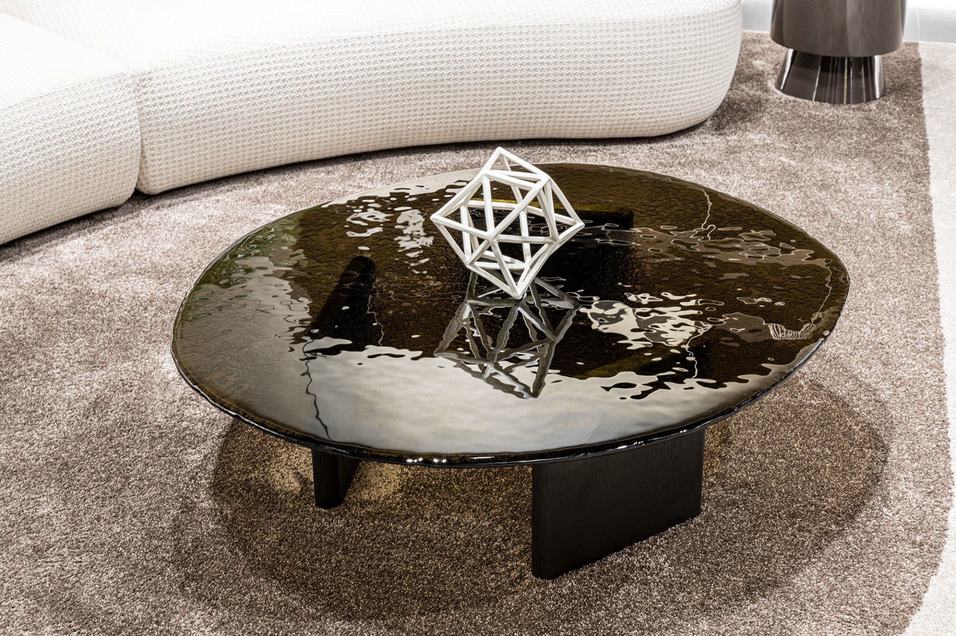 Nature and its clarity were the sources of inspiration for Stowe. On one side, smooth and refined; on the other, material and irregular, the beauty of cast glass evokes the memory of the sea’s ripples. The Stowe side table embodies the essence of Made in Italy, adding a touch of sophistication to the living area through its artisanal craftsmanship.