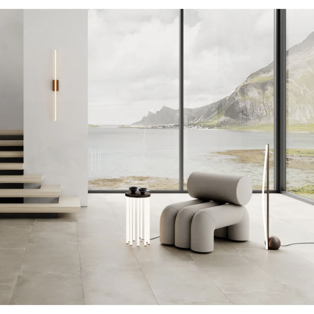 As an ode to 80’s neon design era, the Neon Table is a hybrid between a side table and a floor lamp. Neon features a bronze plated tabletop, carried by 9 illuminating table legs made from white acrylic tubes.