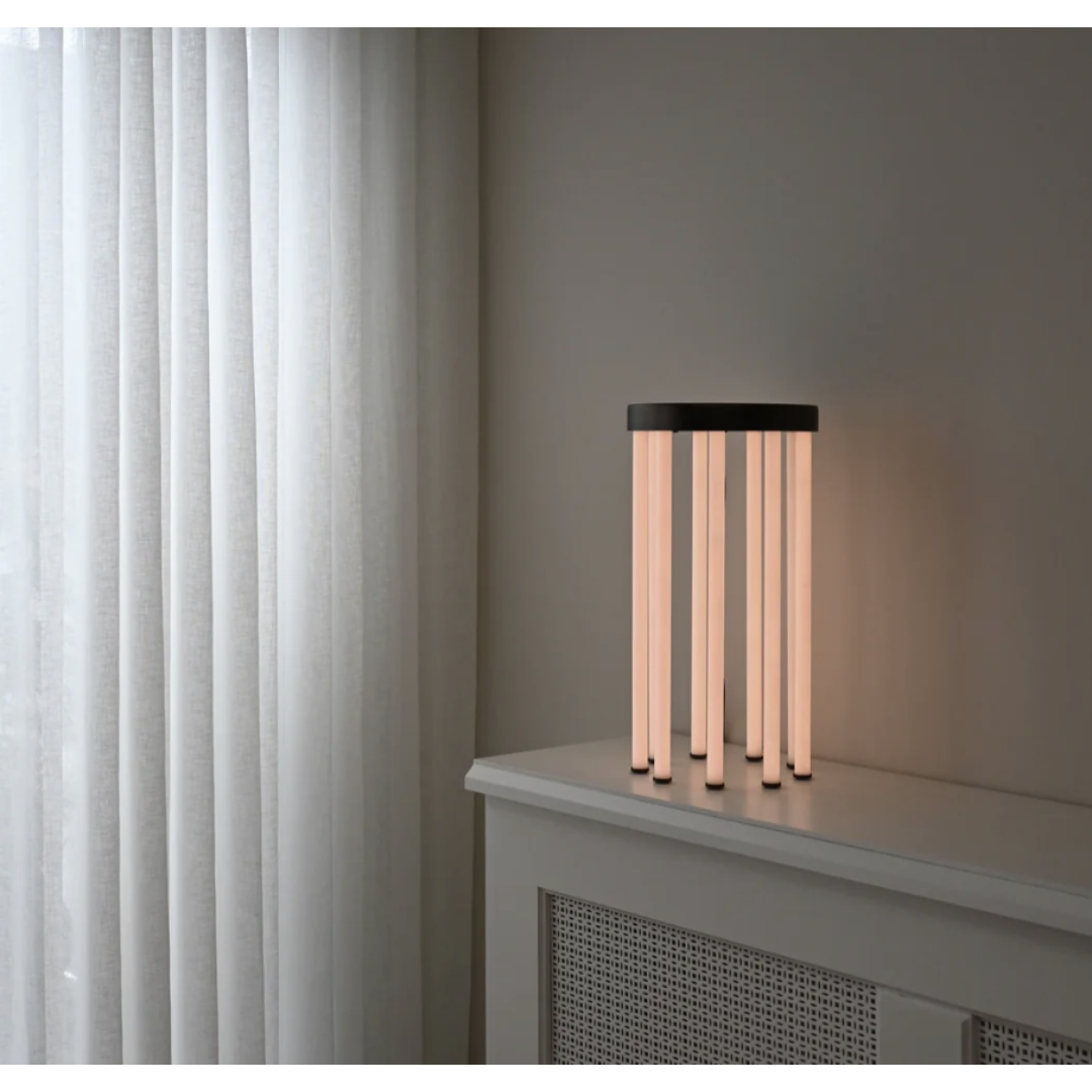 Neon Table comes with an inbuild LED light source with Kelvin 2200 to create a warm and cozy atmosphere. The lightweight table is easy to move around and connected to a nearby power source with the black cable cord. All metal parts are plated in Bronze.