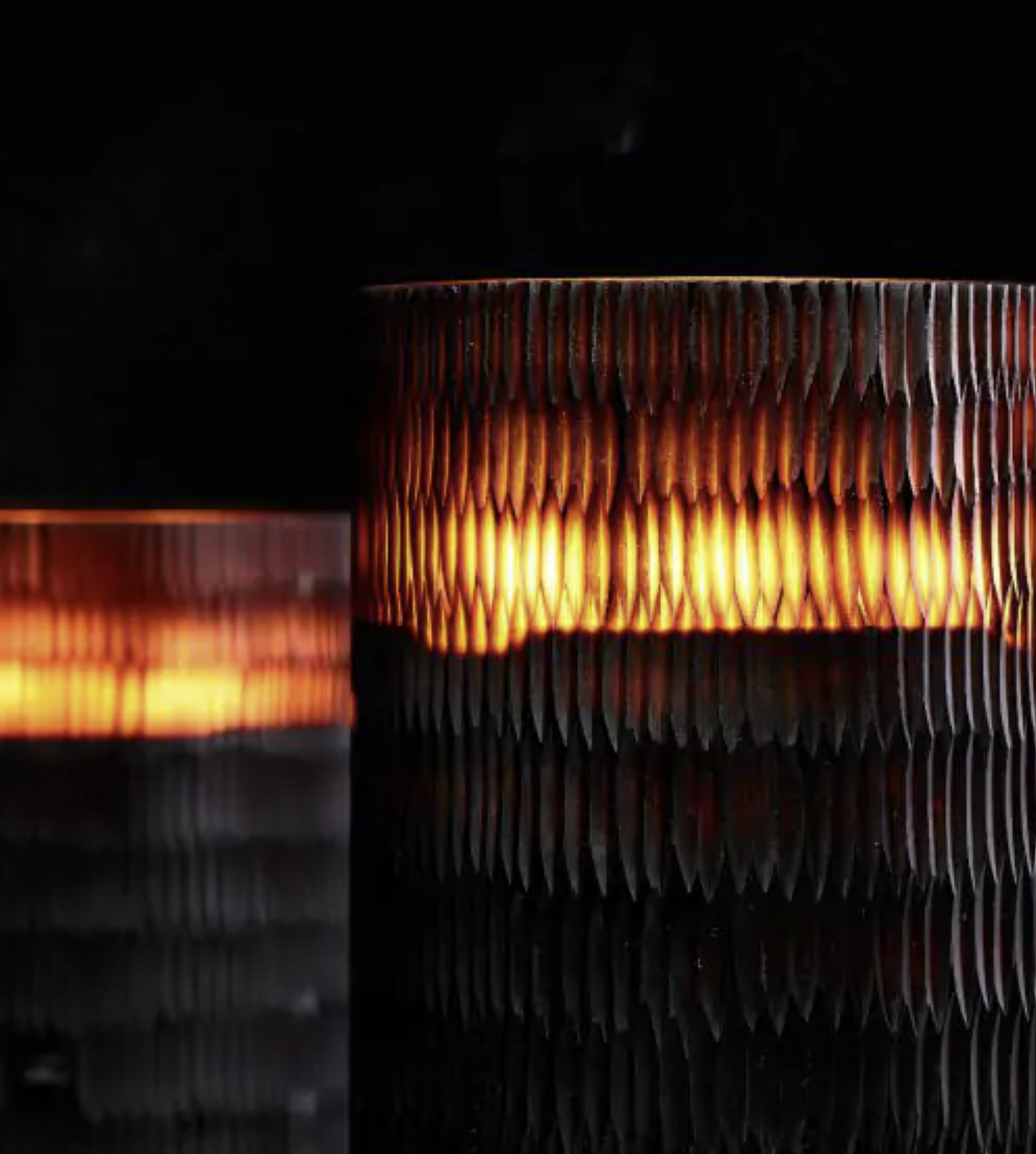 Ilse Vandeputte: “This is a design based on my visit to the Masai in Africa. A drawing based on their spears, vital for survival in their everyday life. Light the candle and this design will warm up your interior with the coziness of an open fireplace.”